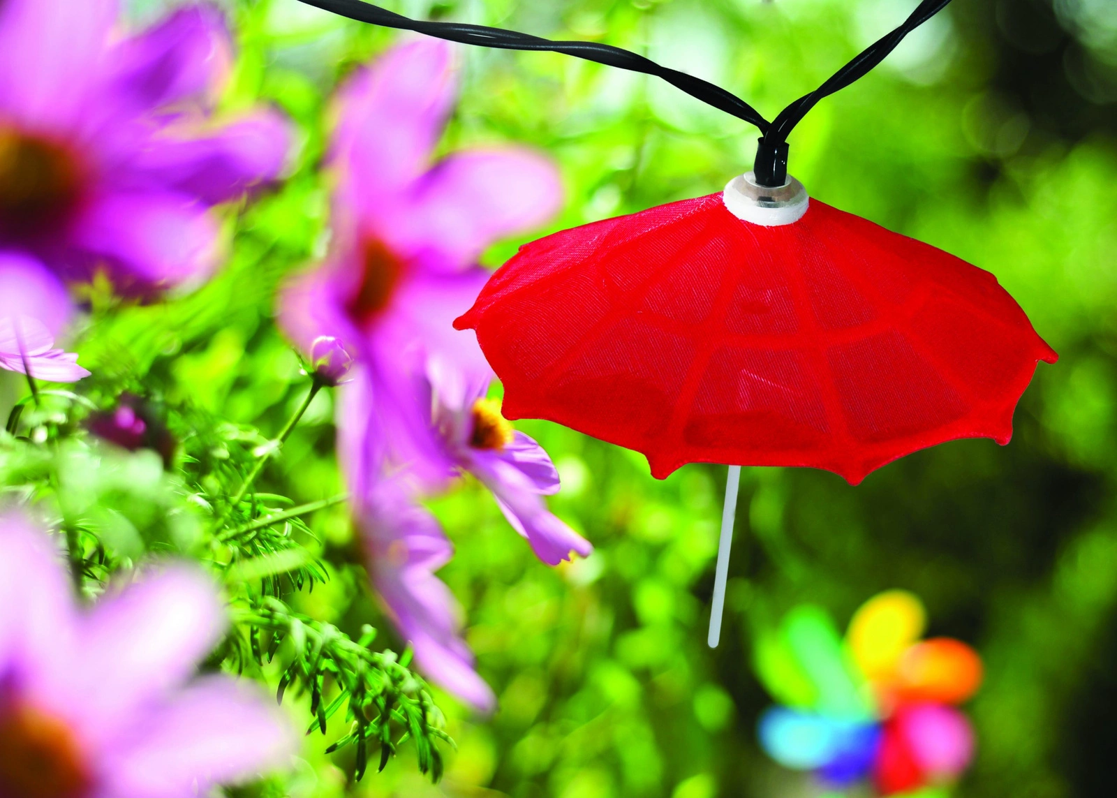 - Slunečníkový řetěz rozzáří vaši zahradu jemným barevným světlem vycházejícím zpod krásných slunečníků.