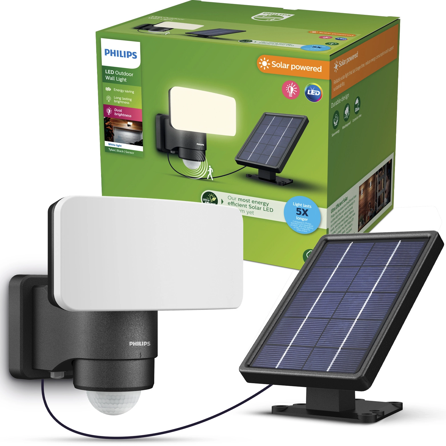 Solární LED reflektor 6W 1000lm 3000K IP44 se senzorem pohybu a soumraku černý Tylus Ultra Efficient Philips