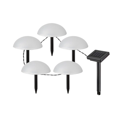 Solární LED zahradní lampa s hroty TREPPIO 5x1W 4000K IP44 půlkulatá stínidla černá a bílá RABALUX
