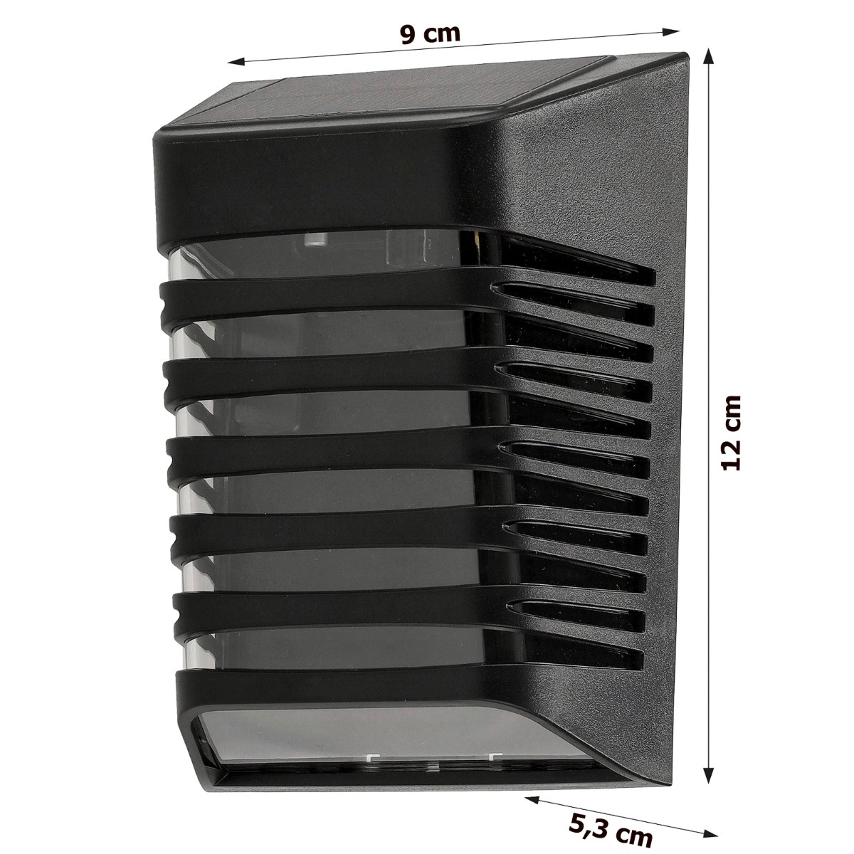 Solární lampa pro povrchovou montáž v černé barvě pro dekorativní a praktické osvětlení vaší zahrady. Dokonale dokresluje atmosféru zahrady. Vhodné pro osvětlení fasád budov a dalších venkovních prostor. Jedná se o lampu vybavenou solárním panelem, který během dne absorbuje sluneční energii a ukládá ji do vestavěné baterie. Lampa tak funguje zcela bezdrátově, což umožňuje snadnou instalaci a není nutné ji připojovat k elektrické síti.