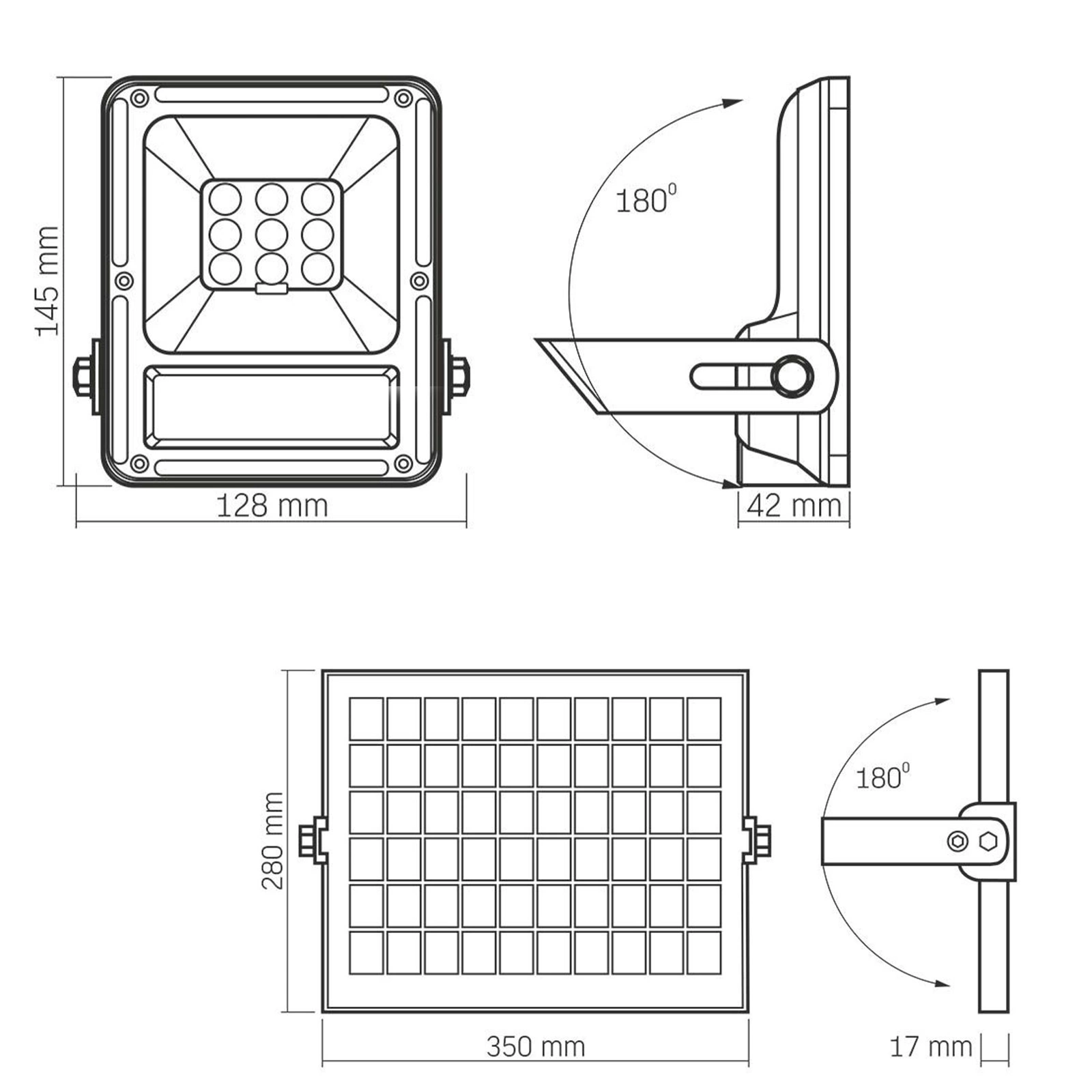 LED solární světlomet má pouzdro vyrobené z hliníku s šedým povlakem. Lampa je vybavena 9 LED diodami , které zajišťují vysokou účinnost v kombinaci s dlouhou životností. Nabíjení trvá ± 5-8 hodin v závislosti na slunečním záření.