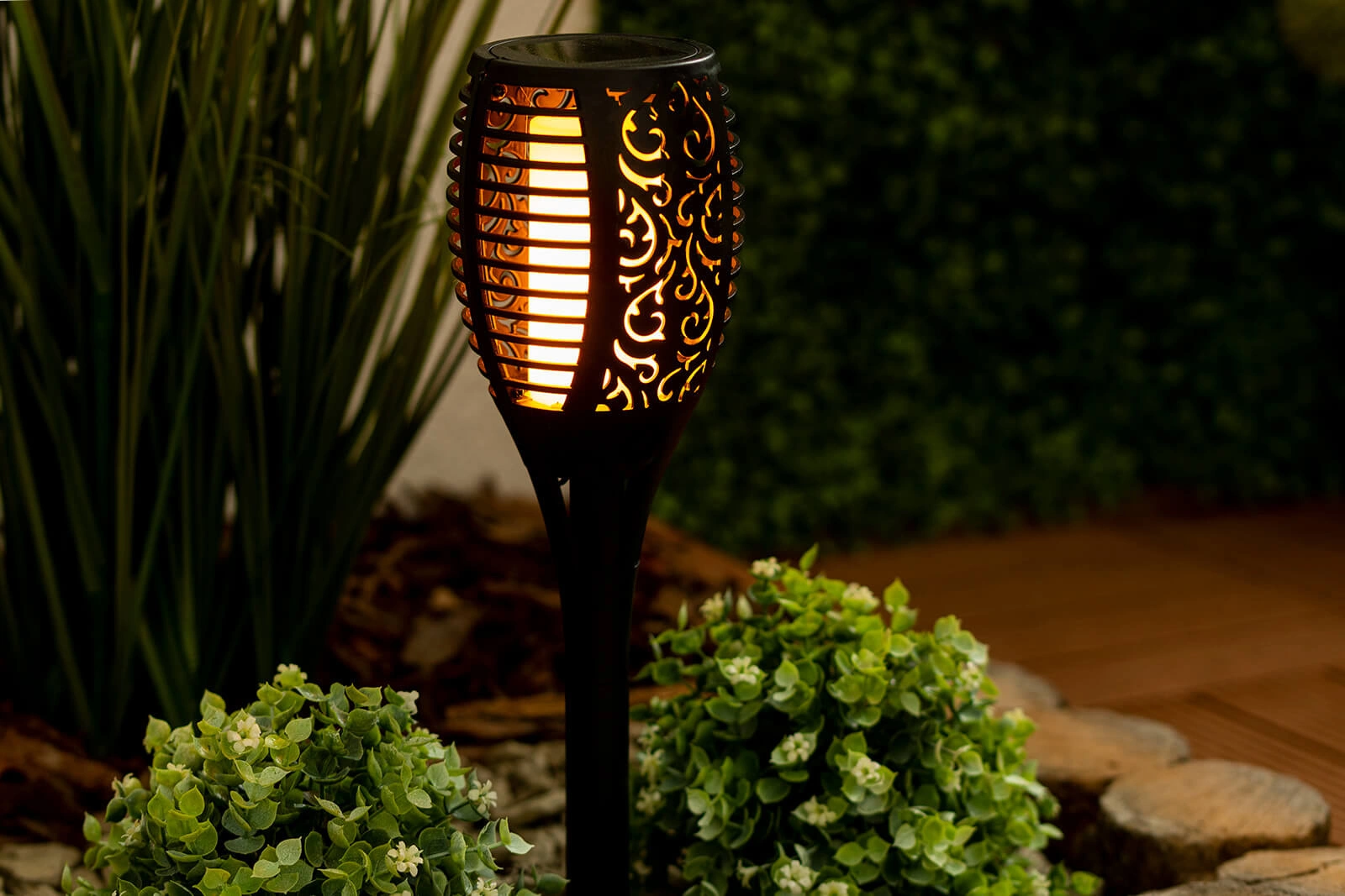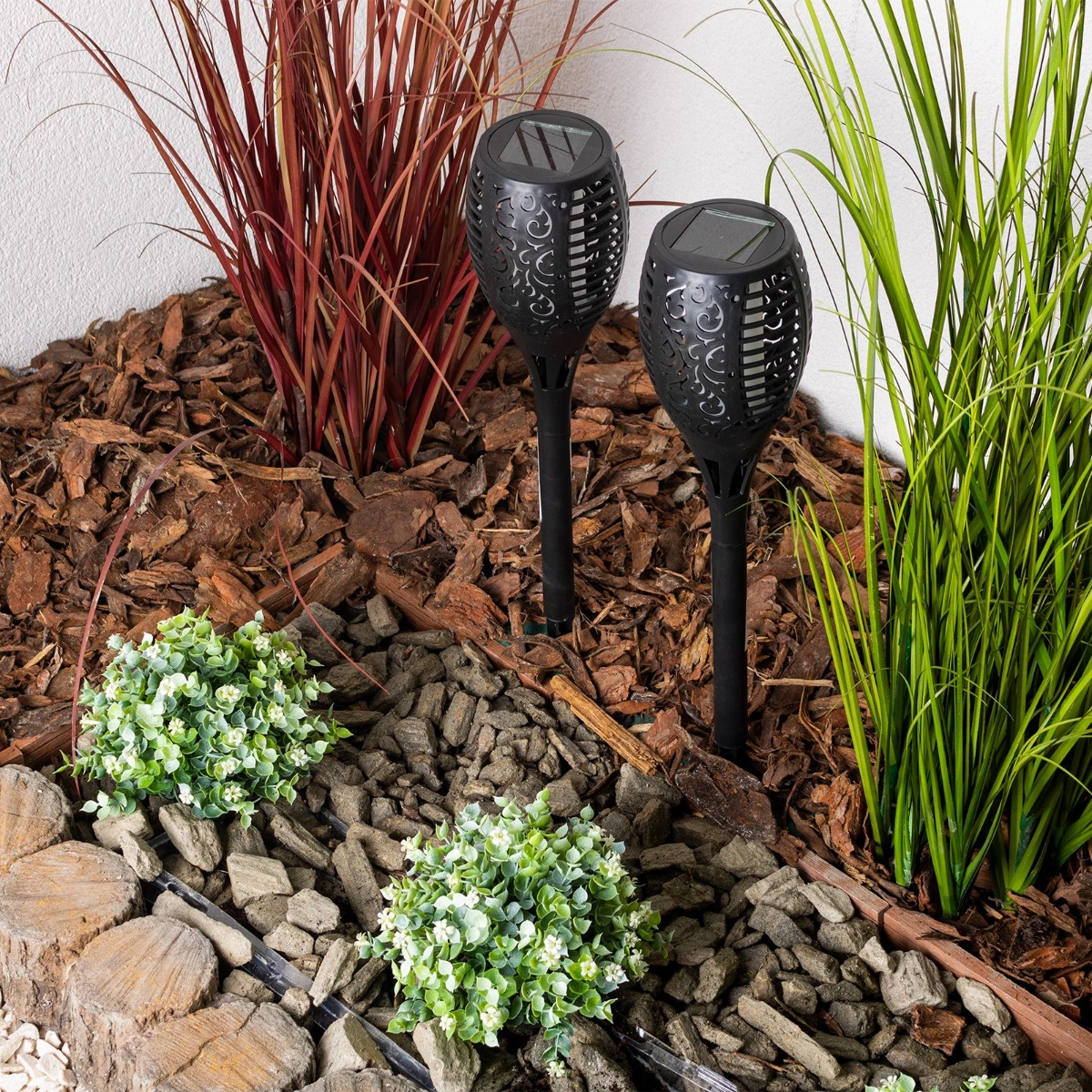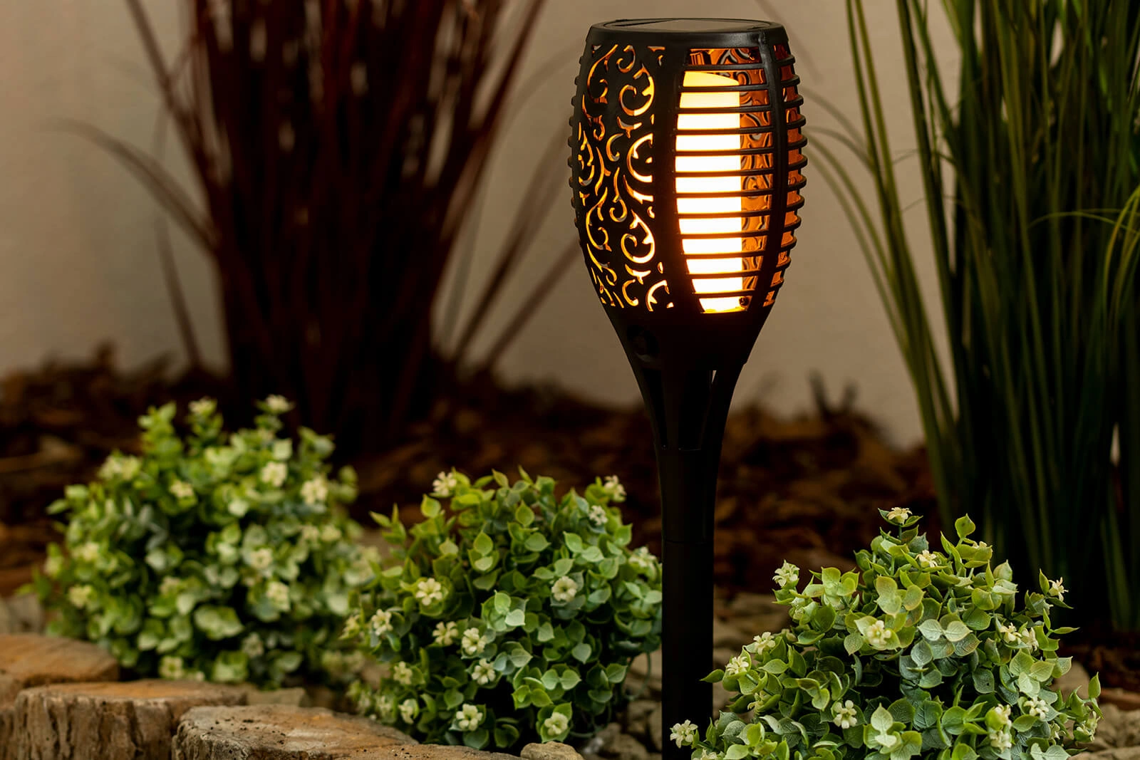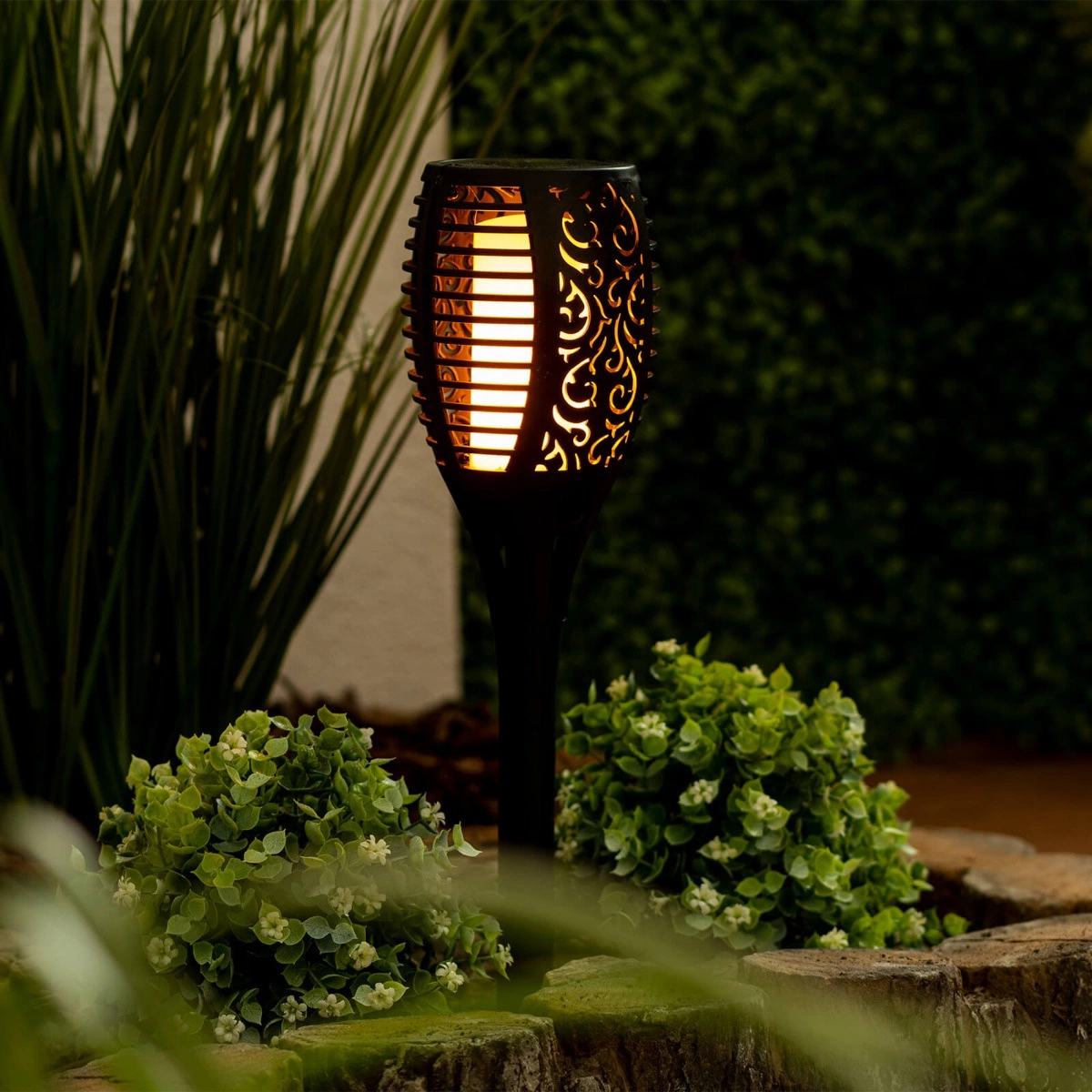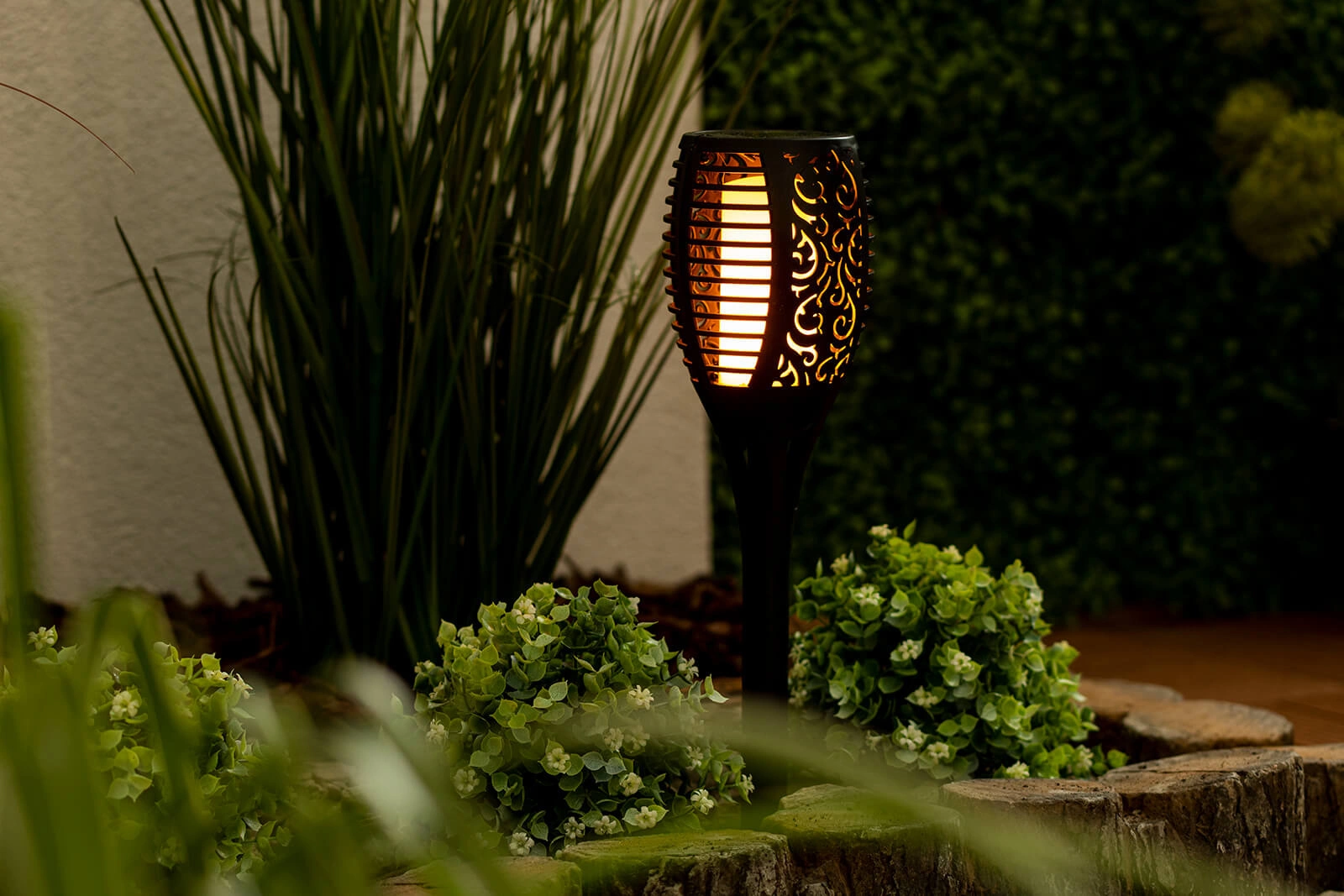 Solární lampa s imitací ohně má integrovaný zdroj světla, který svítí silným světelným paprskem, a navozuje tak příjemnou, relaxační atmosféru, která podporuje odpočinek.