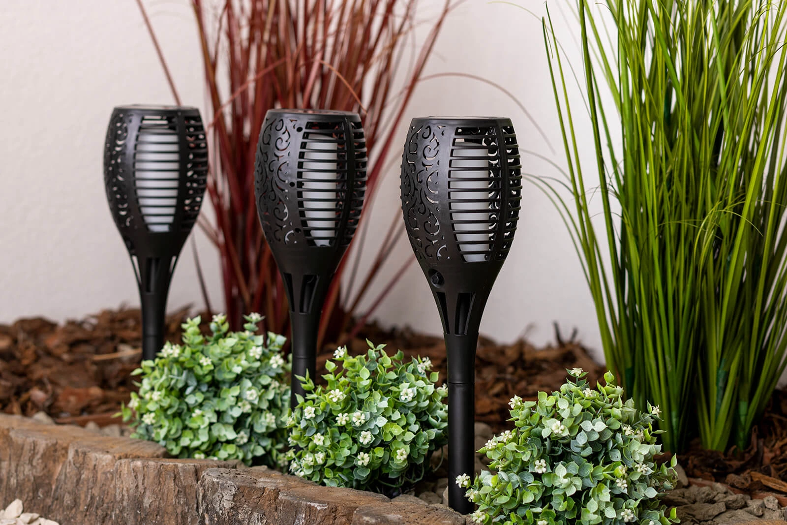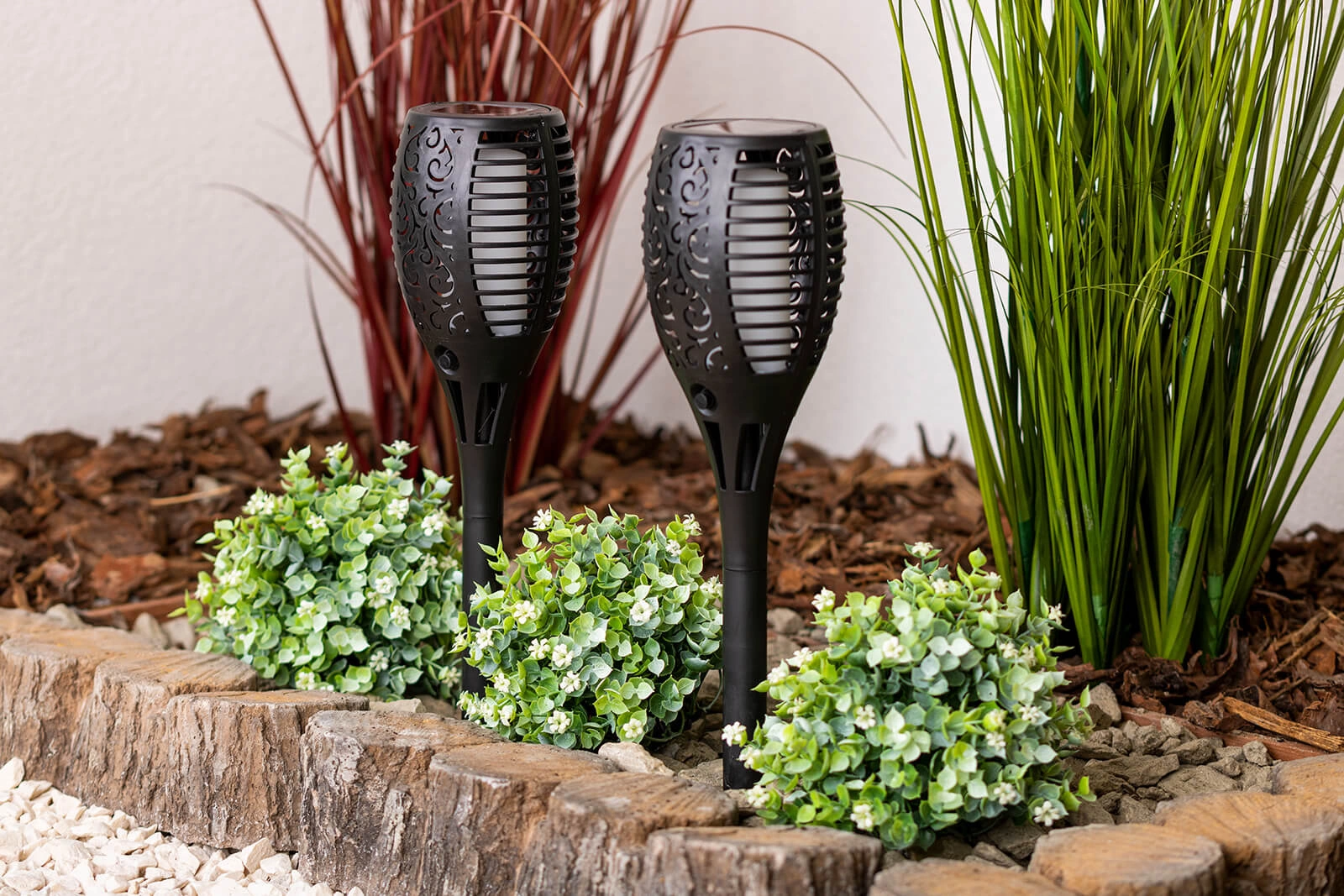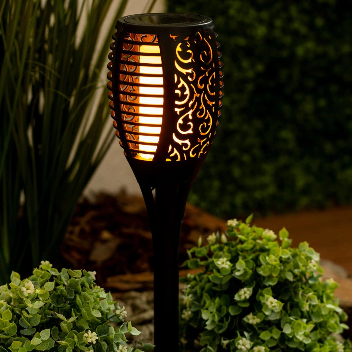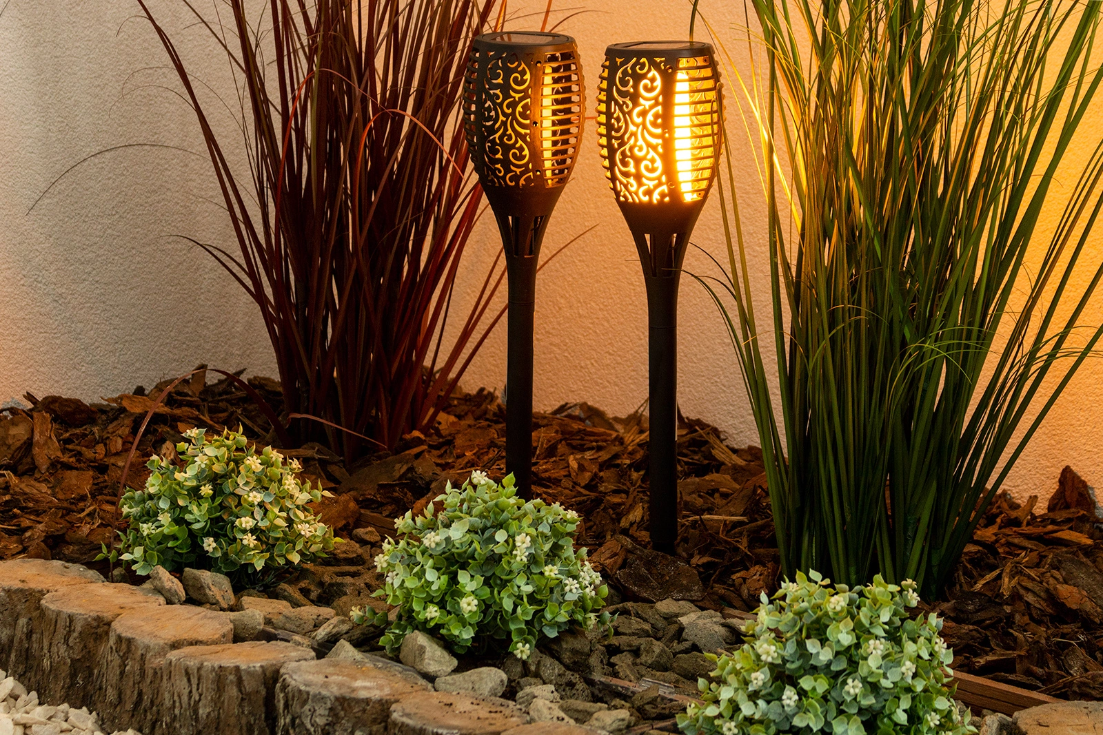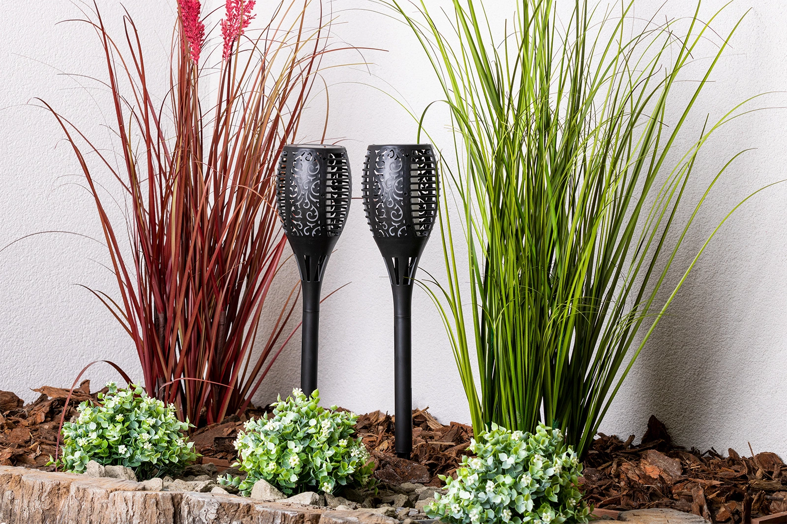 Solární lampa s imitací ohně má integrovaný zdroj světla, který svítí silným světelným paprskem, a navozuje tak příjemnou, relaxační atmosféru, která podporuje odpočinek.