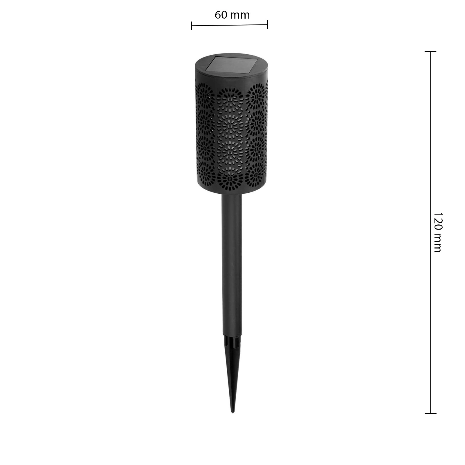 Solární lampa v černé barvě pro dekorativní a praktické osvětlení vaší zahrady. Dokonale podtrhne atmosféru zahrady a díky neobvyklé hře světel a stínů vnese do okolí domu jedinečnou atmosféru.
