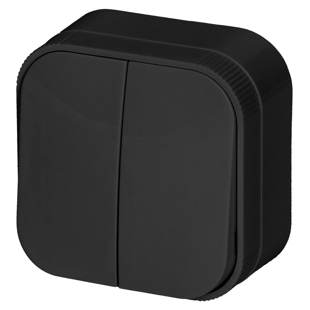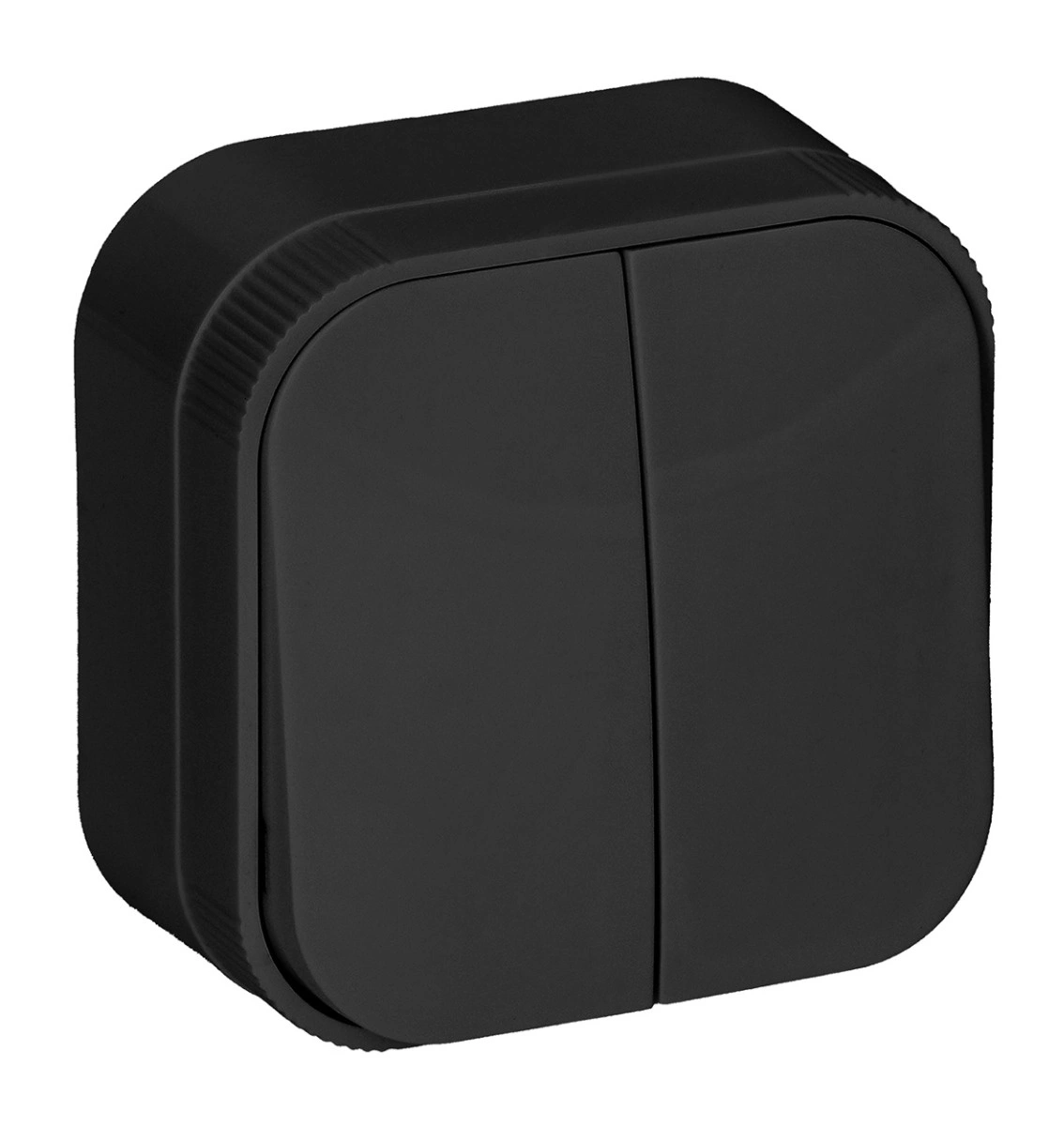 Dvojitý svícenový spínač se zaoblenými hranami, černý , pro povrchovou montáž. Prezentovaný vypínač slouží k zapínání a vypínání obvodu, ke kterému je elektrické zařízení připojeno. Tento typ spínače používáme k aktivaci skupiny světelných bodů z celého okruhu, např. 2 nebo 3/5 nebo všech 5 celkem (2+3)