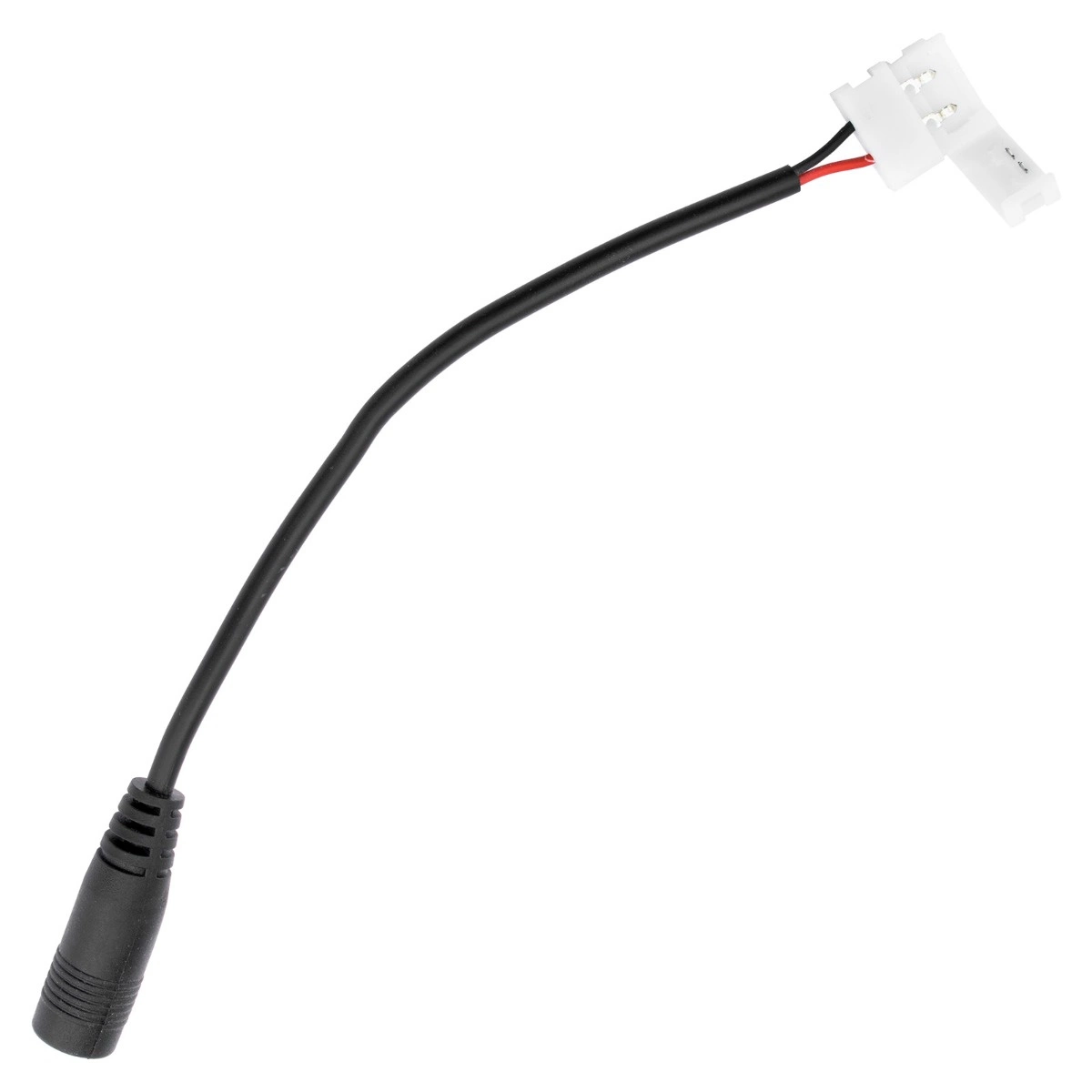 Dvoupinový konektor na kabelu určený pro 10mm široké LED pásky, na jedné straně zakončený západkou a na druhé DC 2.1 konektorem.