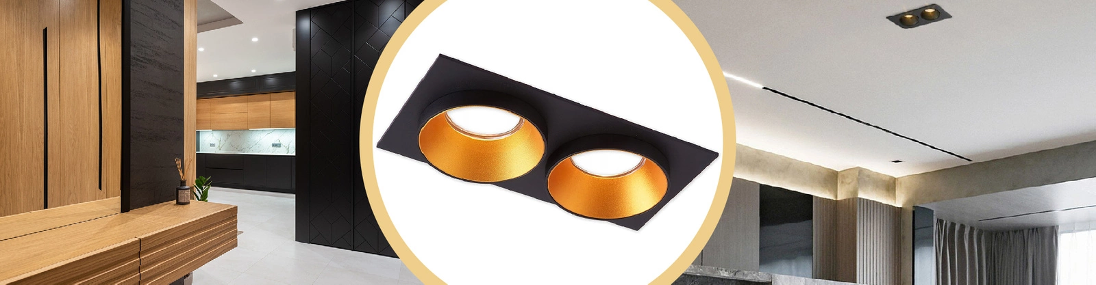 SPOT 2x GU10 obdélníkové černé zlato zapuštěné dvojité zapuštěné svítidlo