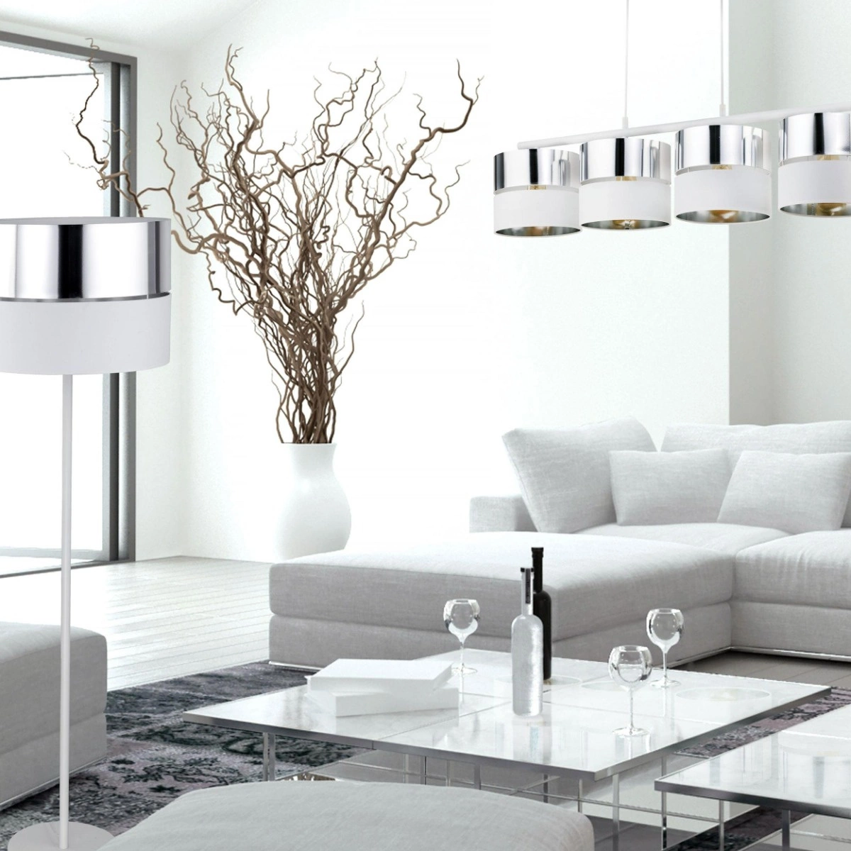 Charakteristickým znakem rodiny je kombinace dvou výrazných barev, a to bílé se stříbrnou. Nejde jen o dvoubarevné stínidlo, ale o speciální design v podobě kombinace dvou stínidel s centimetrovou mezerou mezi nimi. Toto přerušení je přes den dekorativním prvkem, ale skutečný efekt se projeví až po zapnutí světla, které jemně proniká otvorem a vytváří světelný lem na stropě nebo stěnách. Velkou předností svítidel je stínidlo, které je uvnitř lemováno stříbrnou fólií, která navíc odráží světlo zevnitř a uvolňuje ho štěrbinou.