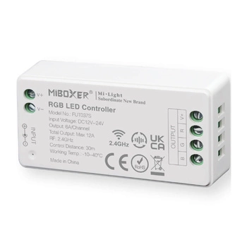 Dočasně nedostupnéStmívač přijímač LED RGB pro pásové osvětlení 12-24V DC 12A FUT037S MI-LIGHT