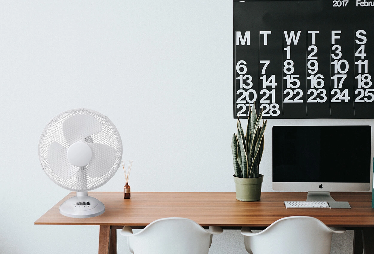 Stojací stolní ventilátor VENTILÁTOR 30cm 40W Bílý