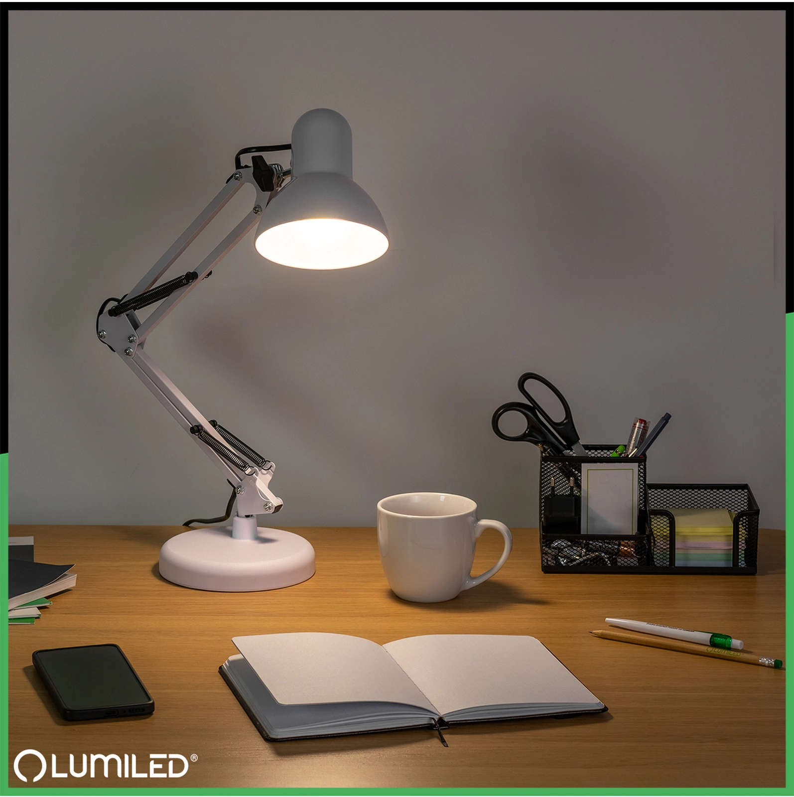 E27 TOBI kreslicí stolní lampa bílá + stolní držák Lumiled