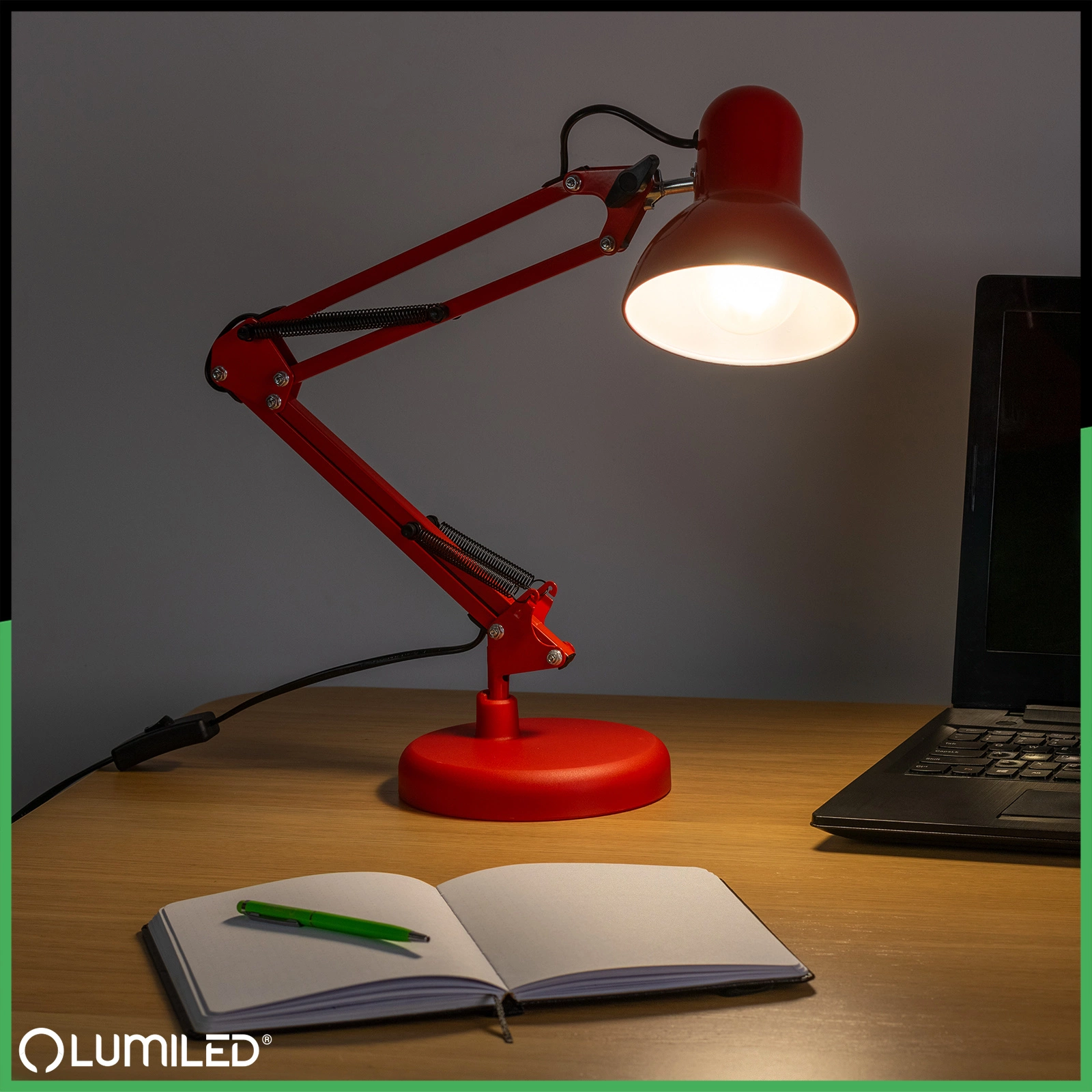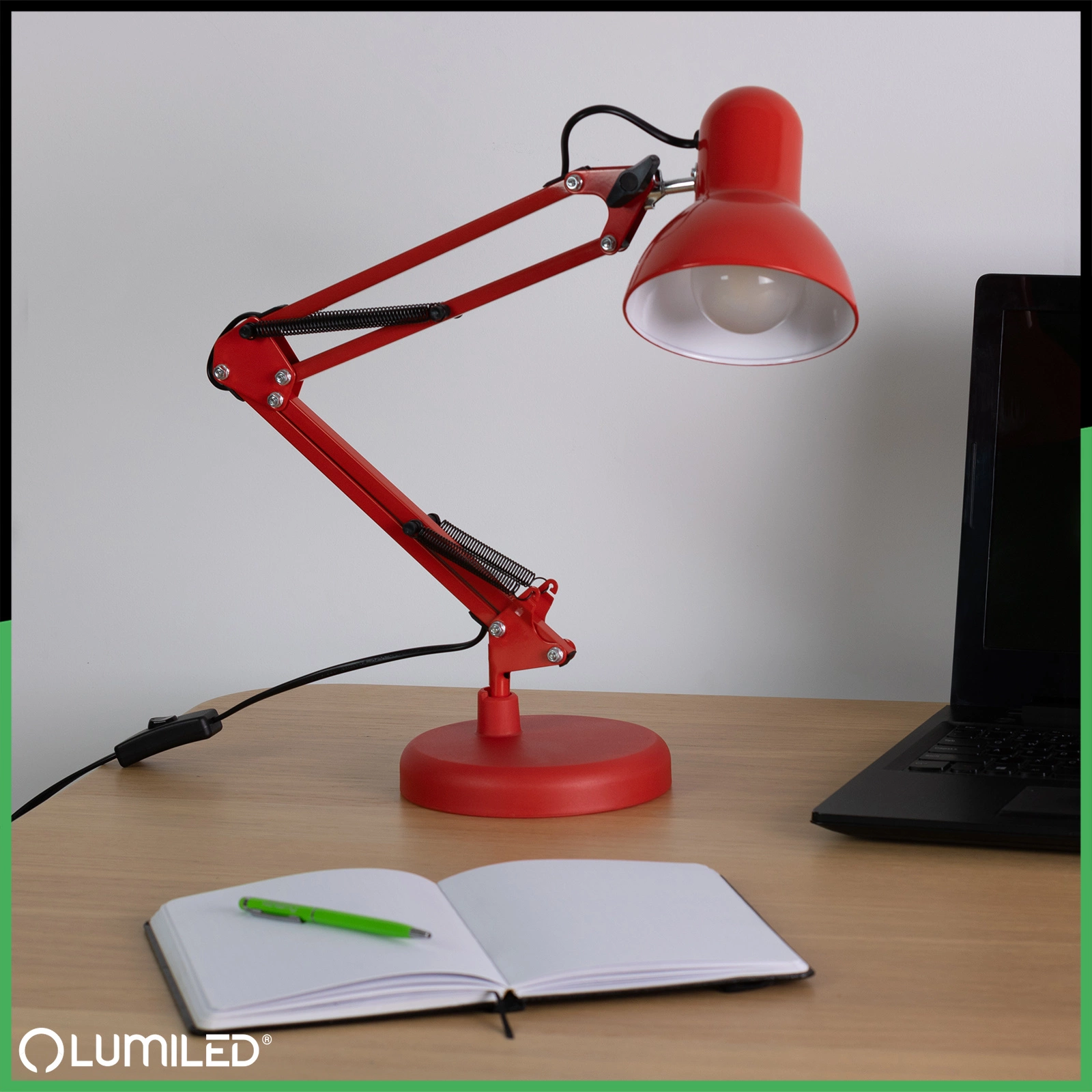 E27 TOBI Stolní lampa červená + držák na stůl Lumiled