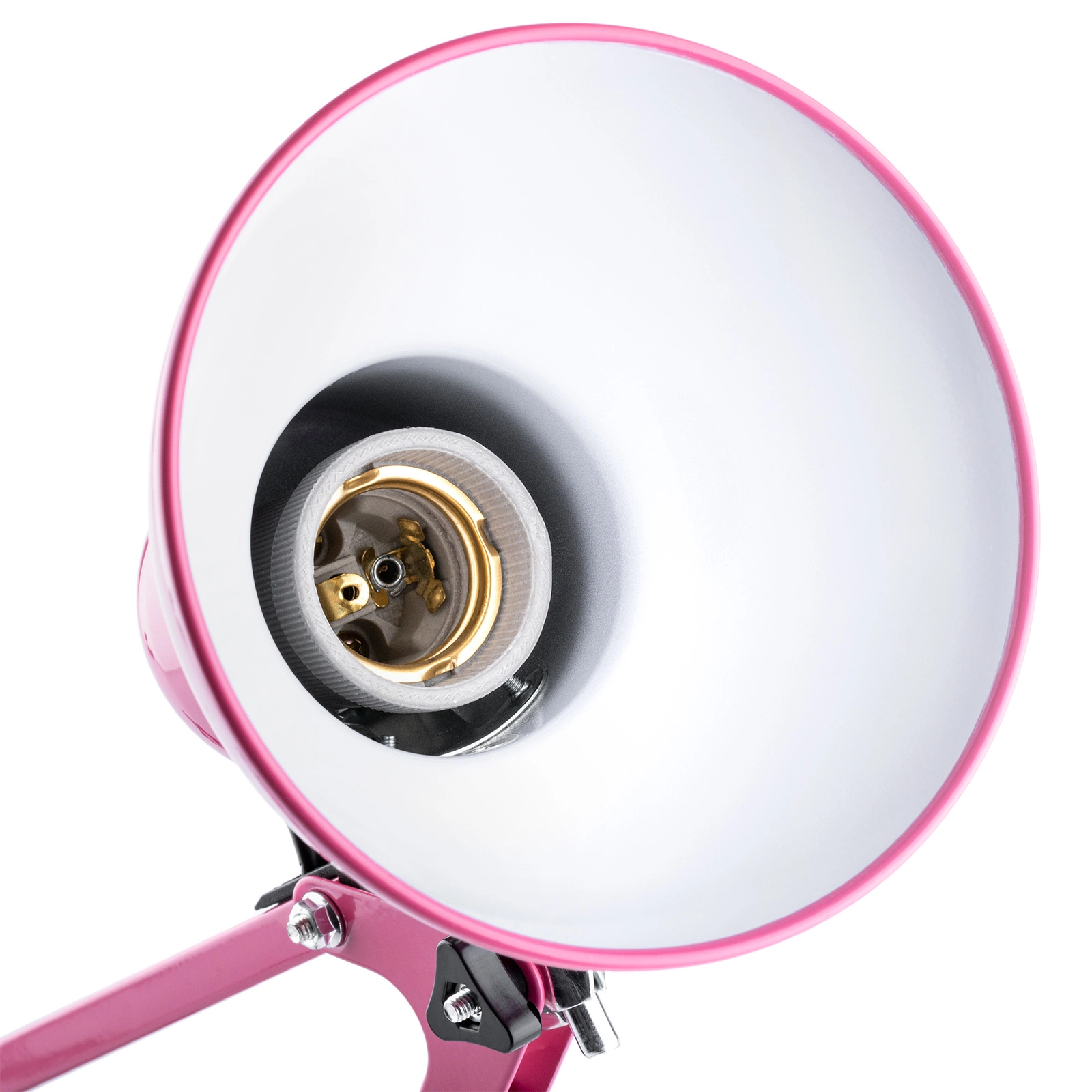 Stolní kreslicí lampa TOBI od LUMILED v růžové barvě je kombinací moderního stylu a klasické ergonomie. Díky přiloženému držáku ji můžeme přišroubovat na hranu pracovní desky různé tloušťky a součástí je i klasická patka umožňující umístění lampy kamkoli.
