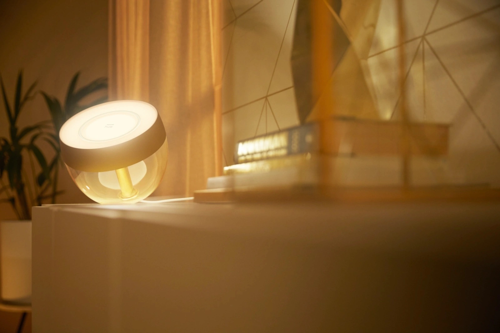 Hlavní výhodou produktu je možnost ovládat jej prostřednictvím jednoduché mobilní aplikace s funkcí Bluetooth k dispozici pro Android a IOS, pomocí kterého lze ovládat až deset světelných bodů. Další výhodou předloženého výrobku je, že jej lze ovládat pomocí Hlasových asistentů jako např Amazon Alexa, Google Assistant, Apple HomeKit a Microsoft Cortana, abyste mohli jednoduchými hlasovými příkazy pohodlně ovládat světlo v místnosti. Lampa Philips Hue limitovanou edici lze připojit k Hue Bridge (prodává se samostatně), abyste měli přístup ke všem funkcím chytrého osvětlení. Můžeme aktivovat program usnadnit zasypávání i přirozené probuzení světlem. Lampa má schopnost hluboké ztlumení světla, která v kombinaci s funkcí pomalého svícení umožňuje probouzet se světlem imitujícím východ slunce a postupně se ztlumující teplé bílé světlo pomáhá večer snadněji usnout.