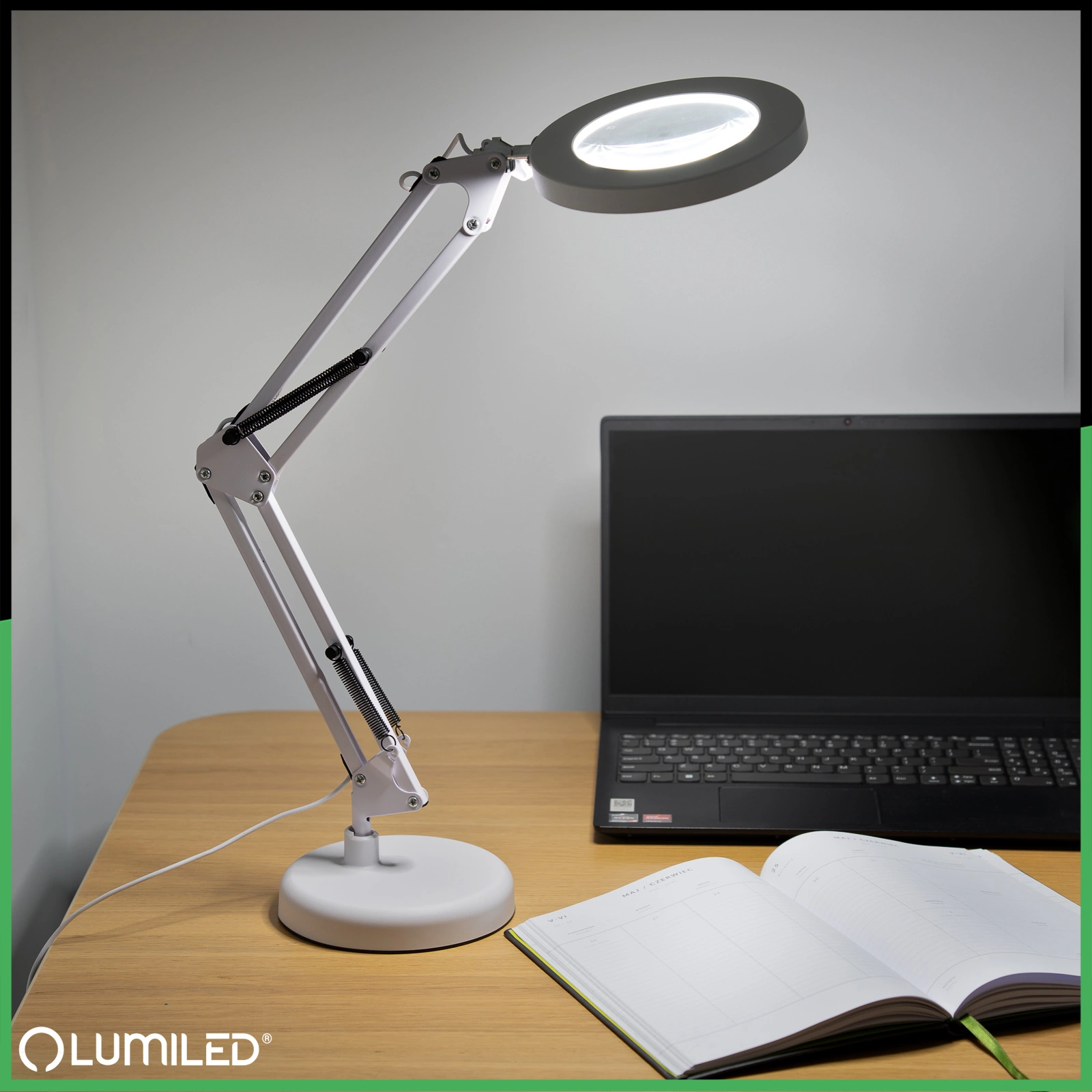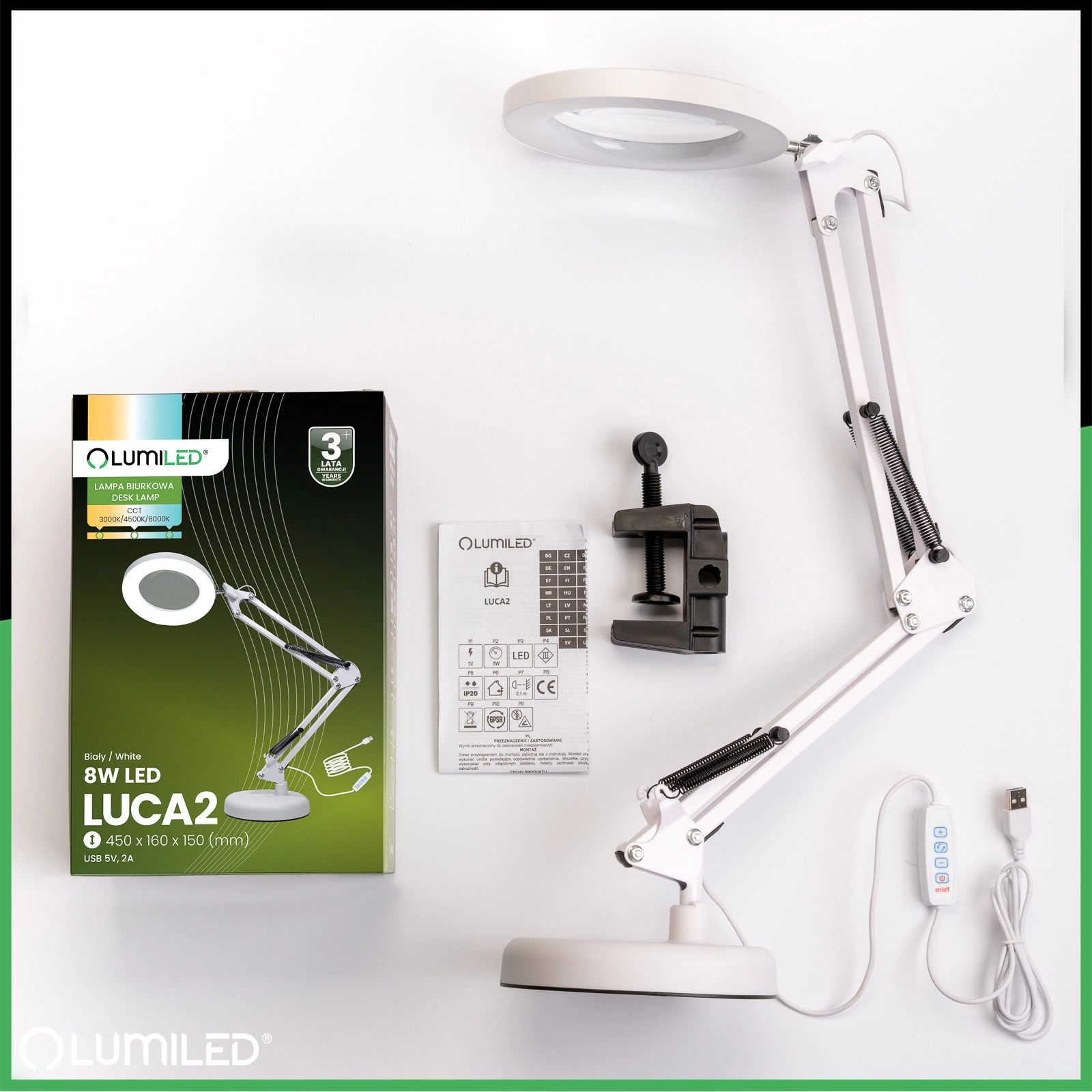 Stolní lampa LED 8W CCT Kreslící stolní lampa 3x zvětšovací sklo LUCA 2 White LUMILED
