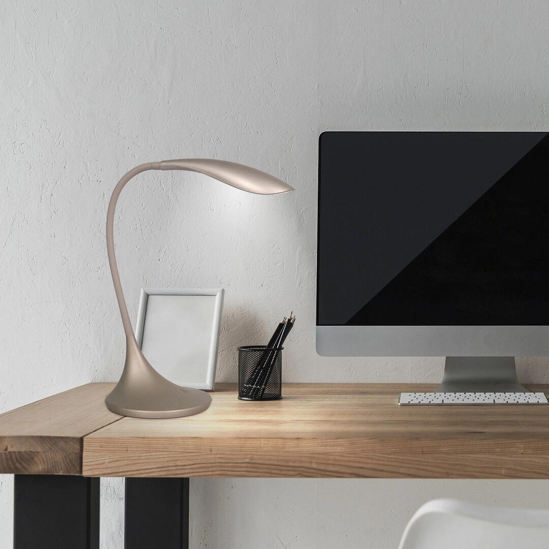Noční stolní lampa Dominic je elegantní a funkční osvětlení, které je ideální pro moderní interiéry. S výkonem 5,3 W a světelným tokem 520 lm poskytuje optimální osvětlení pracovního prostoru. Díky teplé bílé barvě světla 3000 K je ideální do kanceláře nebo dětského pokoje. Je vyrobena z vysoce kvalitního plastu, vyznačuje se moderním stylem a šampaňskou barvou, která dobře ladí s jakýmkoli interiérem.