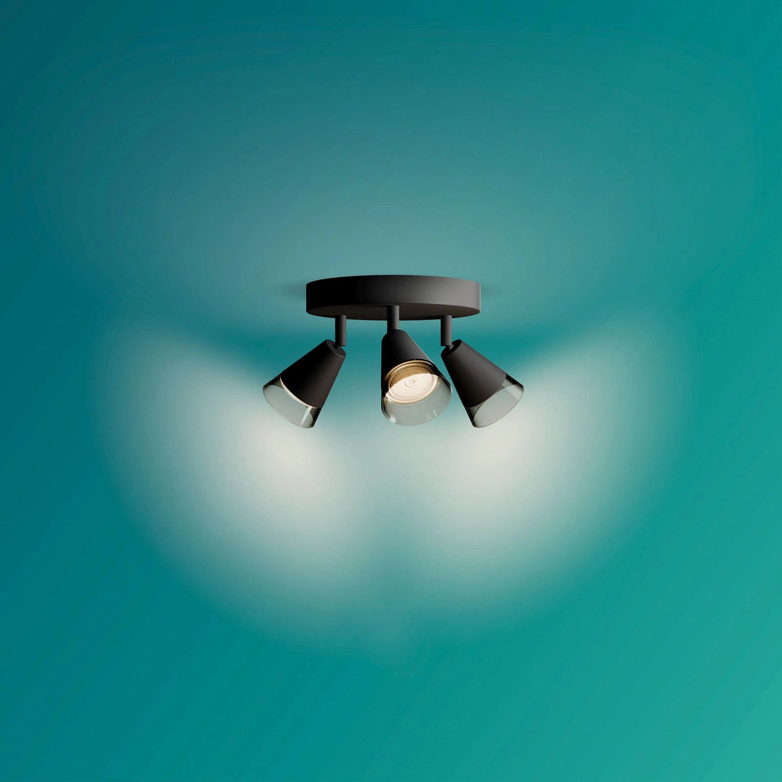 Stropní svítidlo Philips Reflector 3x GU10 Black Cleft je moderní svítidlo, které vyniká stylovým designem a praktičností. Svítidlo je vybaveno třemi reflektory, které umožňují nasměrovat světlo libovolným směrem, což vám umožní dostatečně osvětlit vybraný prostor a také vytvořit náladovou atmosféru. Černé barevné provedení a moderní styl se hodí k současnému interiéru a dodávají mu eleganci a funkční kouzlo. Toto svítidlo je přizpůsobeno pro napětí 220-240 V a frekvenci 50-60 Hz, což zaručuje stabilní provoz a dlouhou životnost. Díky standardním úchytům GU10 lze světelné zdroje snadno měnit, což přispívá k její praktičnosti. Je ideální volbou pro ty, kdo hledají kvalitní osvětlení, které kombinuje estetiku a funkčnost.