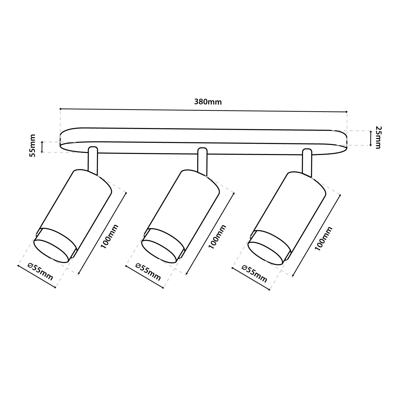 Stropní Lampa Reflektor LED 3x GU10 Trubice Spot ELIGIS Černá LUMILED