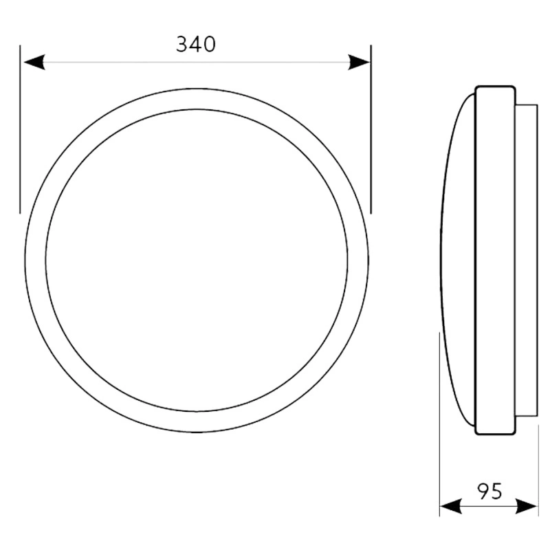 Svítidlo má průměr 33 cm a úhel vyzařování světla 140°.