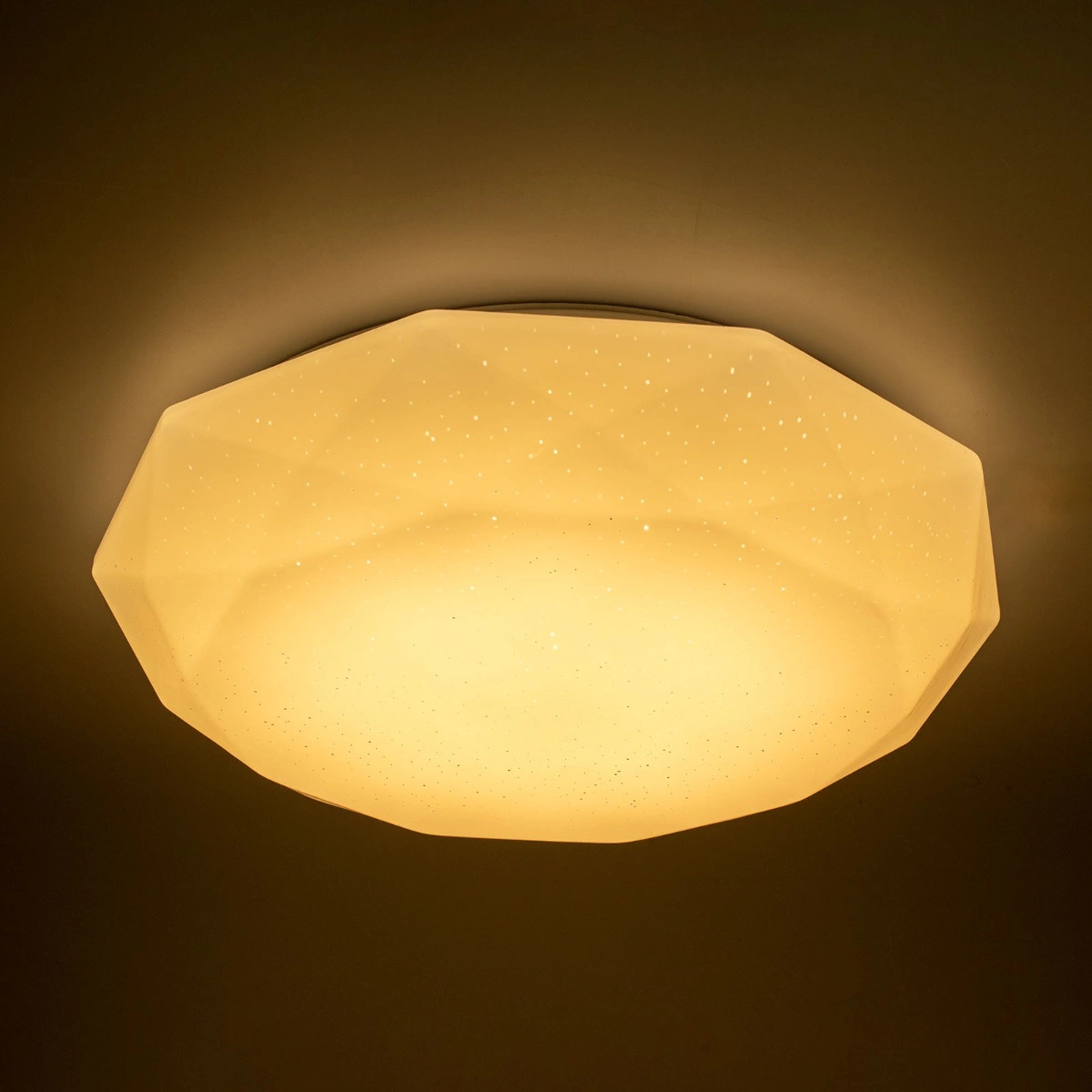 Stropní LED svítidlo DIAMOND s moderním vzhledem připomínajícím diamant je vysoce kvalitní LED světelný zdroj. Nespornou výhodou tohoto unikátního stropního svítidla je jeho snadné ovládání pomocí dálkového ovladače . Kulaté stropní svítidlo má integrovaný LED zdroj světla , který vydává světlo o výkonu 72W . Pomocí dálkového ovladače si snadno přizpůsobíme světlo vydávané stropním svítidlem našim potřebám, aniž bychom opustili své místo. Stropní svítidlo zavěšené na centrálním místě bude ozdobou lahodící oku a bude také dokonalým doplňkem moderních nebo tradičních interiérů, dodá kouzlo a změní jejich vzhled.