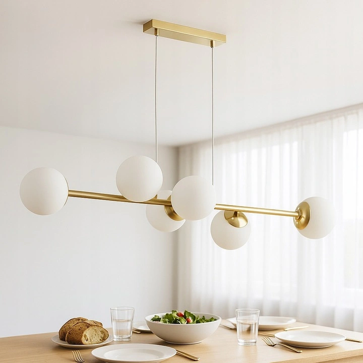 Lampa je vybavena až 6 světelnými body, které jsou ideální pro větší místnosti a poskytují rovnoměrné, účinné a pohodlné osvětlení celého prostoru. Zlatá povrchová úprava v kombinaci s mléčnými stínidly dodává svítidlu prestižní charakter, podtrhuje styl interiéru a dodává mu moderní eleganci.