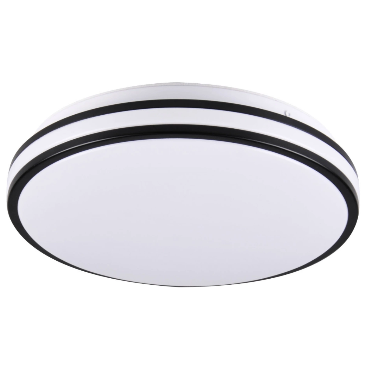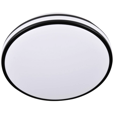 Moderní stropní LED svítidlo ORBIT o průměru 40 cm značky GOLDLUX (dříve POLUX) v černé barvě s vysoce účinným, energeticky úsporným LED světelným zdrojem o výkonu 24W a světelném toku 2600lm. Opálové plastové stínidlo rozděluje světlo rovnoměrně, aniž by způsobovalo oslnění.