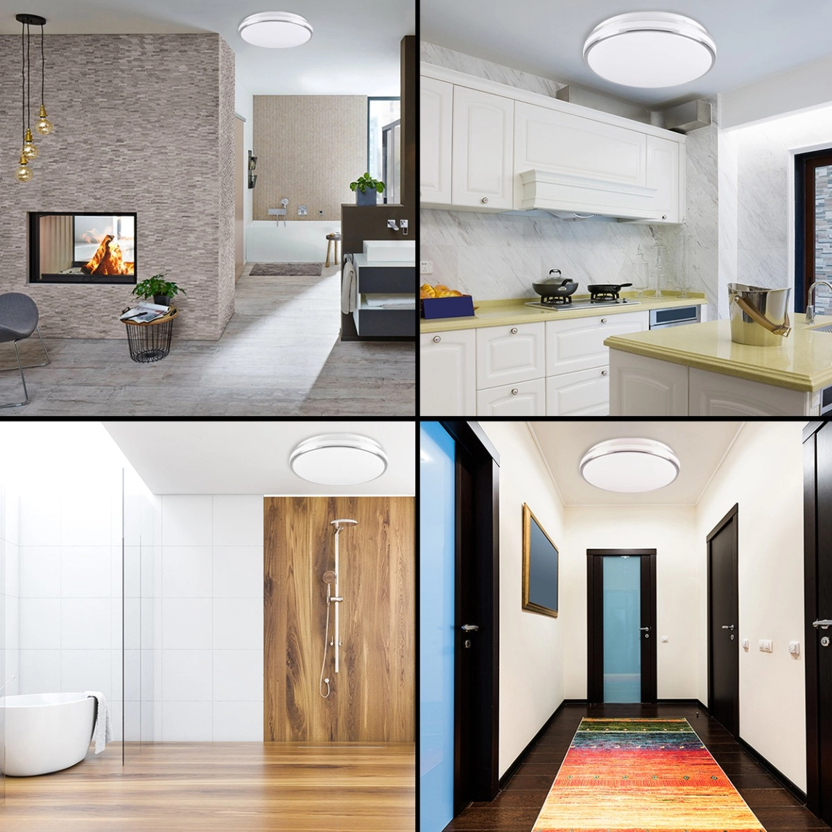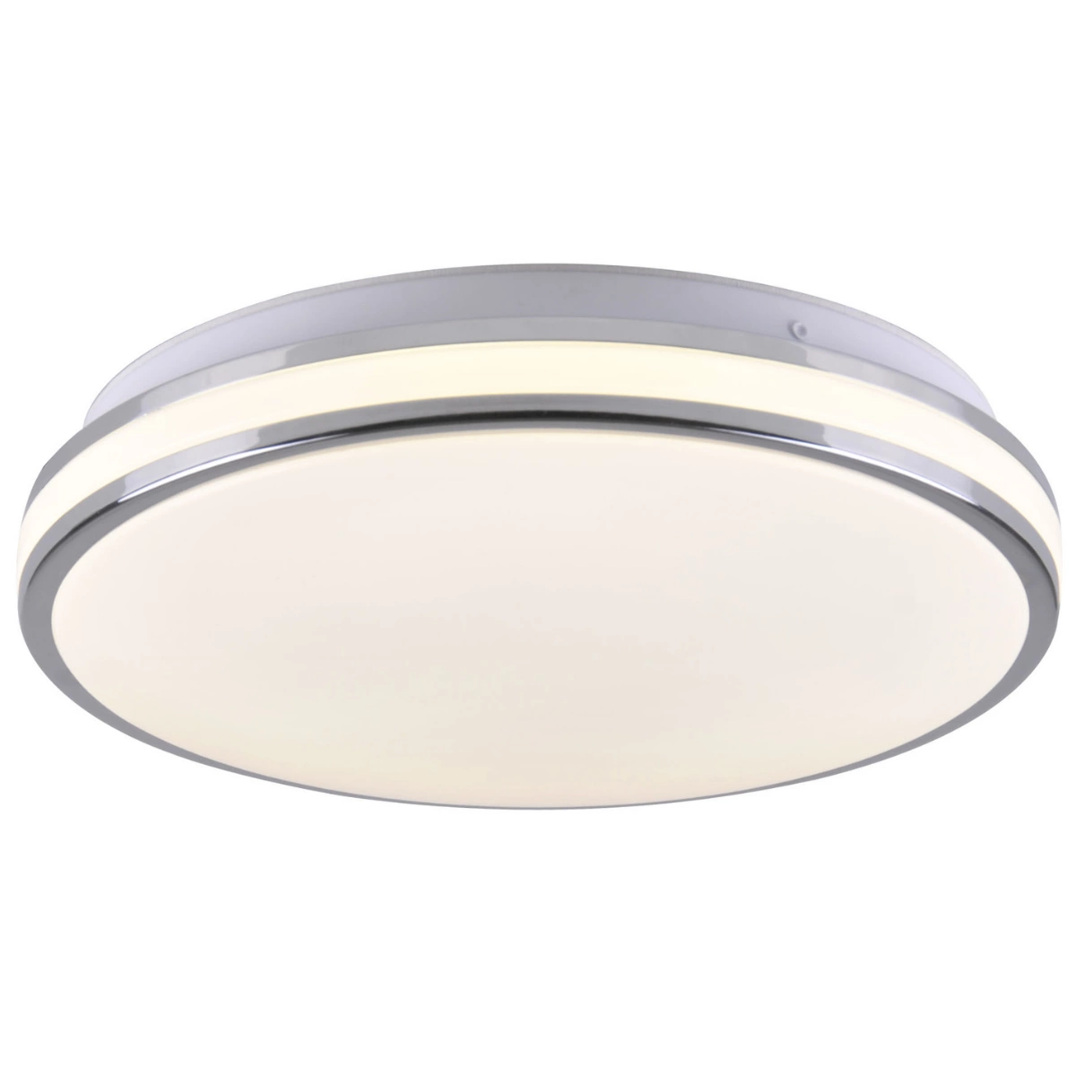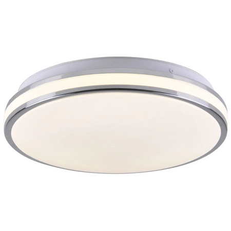 Moderní stropní LED svítidlo ORBIT o průměru 40 cm značky GOLDLUX (dříve POLUX) ve stříbrné barvě s vysoce účinným, energeticky úsporným LED světelným zdrojem o výkonu 24W a světelném toku 2600lm. Opálové plastové stínidlo rozděluje světlo rovnoměrně, aniž by způsobovalo oslnění.