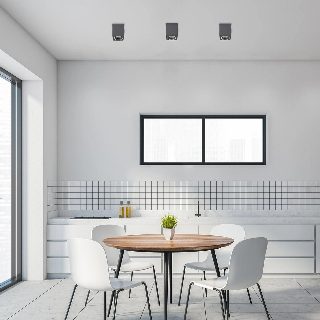 Čtvercové stropní svítidlo GU10 v šedé barvě je moderní řešení osvětlení, které se hodí do každého interiéru. Je vyrobeno z odolného hliníku a opatřeno mléčným plastovým stínidlem, které poskytuje elegantní vzhled a vynikající rozptyl světla. Maximální příkon jednoho světelného zdroje je 5 W a možnost výměny světelného zdroje za model s paticí GU10 vám dává volnost při výběru žárovek.