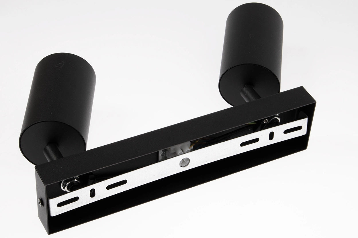 Stropní svítidlo, nástěnné svítidlo řady QUALIS se dvěma světelnými body, matná černá, vyrobené z vysoce kvalitního hliníku. Nástěnné svítidlo je určeno pro žárovky o maximálním výkonu 50W a patici GU10. Stropní bodová svítidla se používají jako dekorativní osvětlení místností, díky nastavitelnému reflektoru můžeme světlo nasměrovat na správné místo. Reflektor je vybaven paticí - závit GU10. Výhodou svítidla s výměnným zdrojem světla je možnost vybrat si žárovku s barvou světla odpovídající našim potřebám (maximální výkon žárovky nesmí překročit 50W).