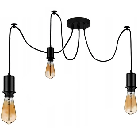 Stropní závěsné svítidlo Pająk. 3 ramena. svítidla se stínidlem 3x E27. černá. industriální půdní styl