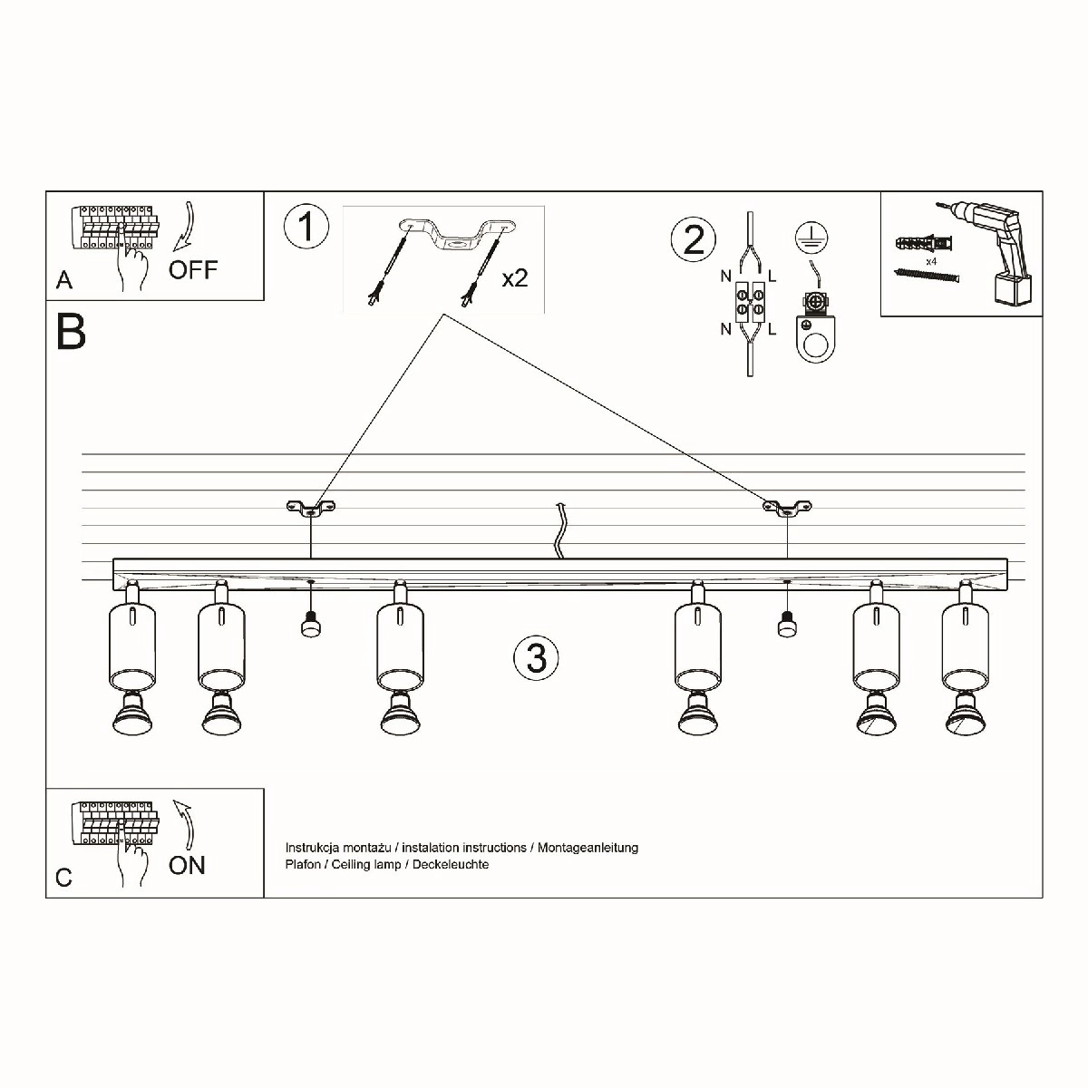 Moderní stropní svítidlo SPOT TUBA pro povrchovou montáž je dokonalou kombinací stylu a funkčnosti. Je vyrobeno v minimalistickém trubkovém designu, zapadne do každého interiéru a dodá mu eleganci a modernost. Díky bílému barevnému provedení a možnosti nastavení směru světla díky šesti pohyblivým reflektorům pro žárovky typu GU10 je ideální pro různé domácí či kancelářské prostory.