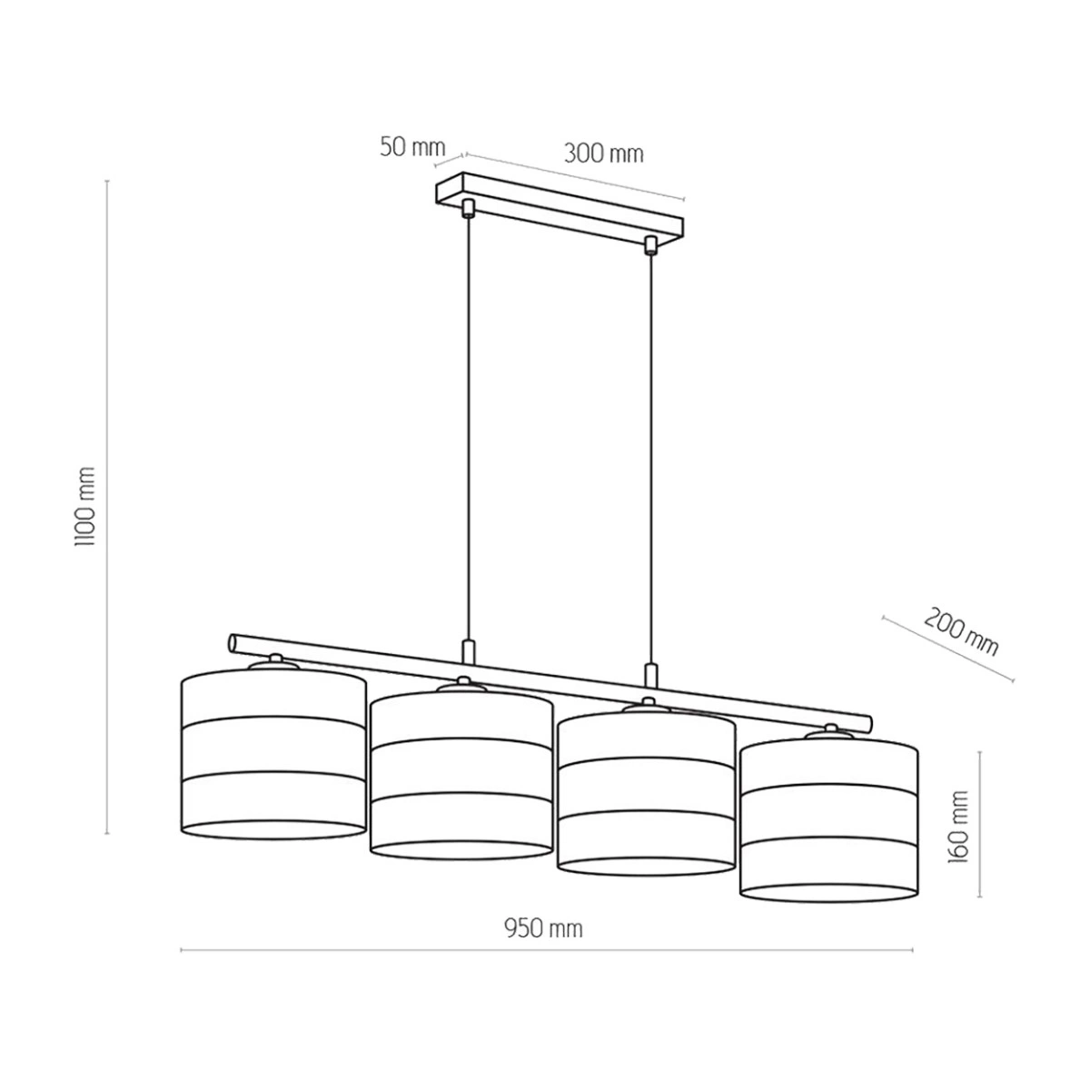 Závěsné svítidlo nad stůl o průměru 50 cm a svítidlo pro 2 nebo 4 stínidla umístěné na kovovém podstavci.