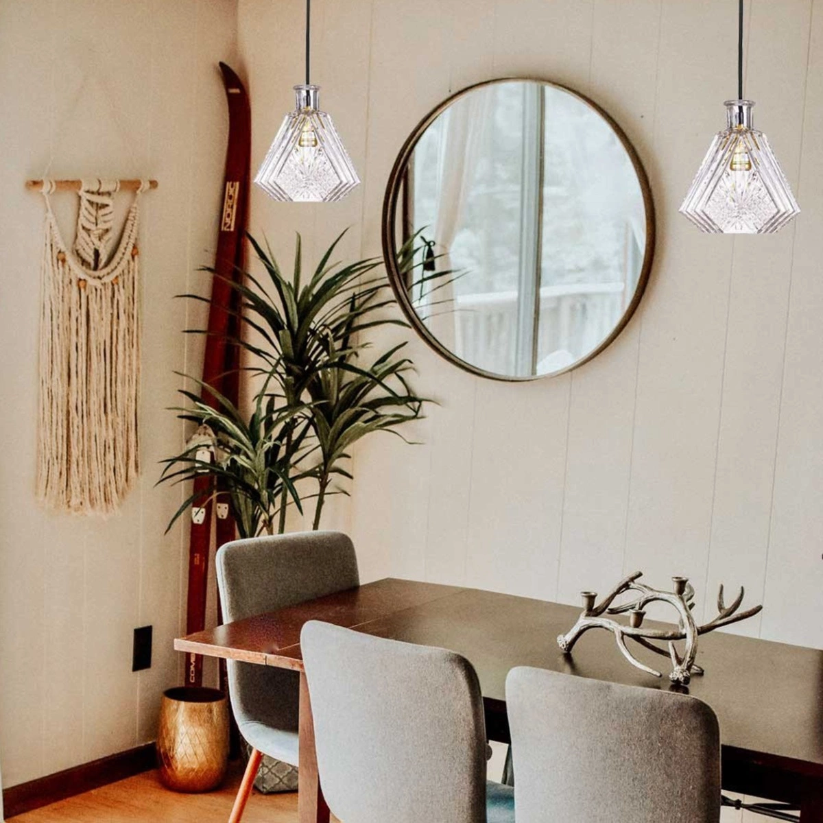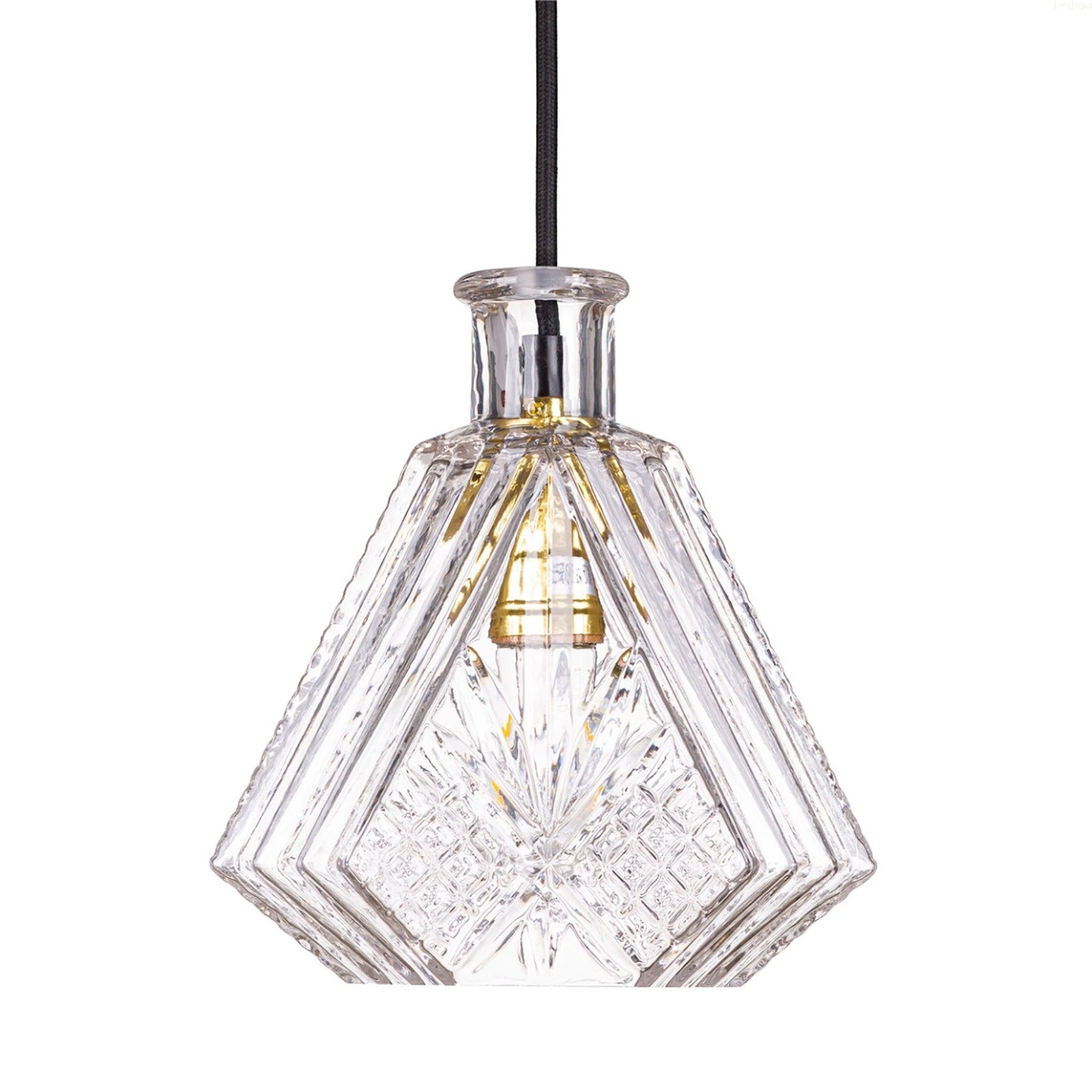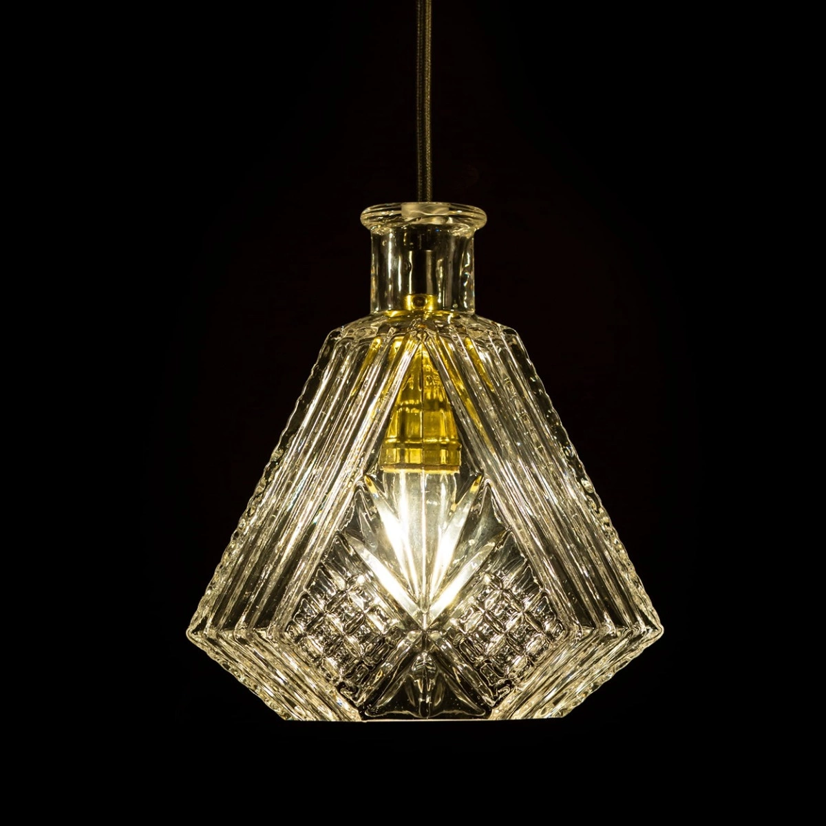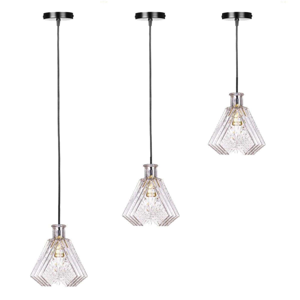 Moderní model skleněné závěsné lampy uzavřené v geometrickém tvaru s orientálními drážkami dodá vašemu interiéru sofistikovaný a originální charakter. Jedinečná kombinace průhledného skla a unikátního tvaru dodává celé lampě velmi vkusný a elegantní vzhled. Vyzařované světlo se bude krásně lámat na orientálních skleněných vzorech a vrhá tak teplou záři na celou místnost.Výborného efektu lze dosáhnout, když tuto lampu složíte s dalšími lampami z této řady a nainstalujete do lampy dekorativní žárovku s viditelným, ozdobným vláknem . Tato lampa je perfektním produktem pro každého, kdo si chce vyzdobit svůj byt jedinečným a netradičním doplňkem, který podtrhne originální a avantgardní design interiéru. Lampa imitující křišťál vypadá skvěle v místnostech zařízených v moderním a okouzlujícím stylu.