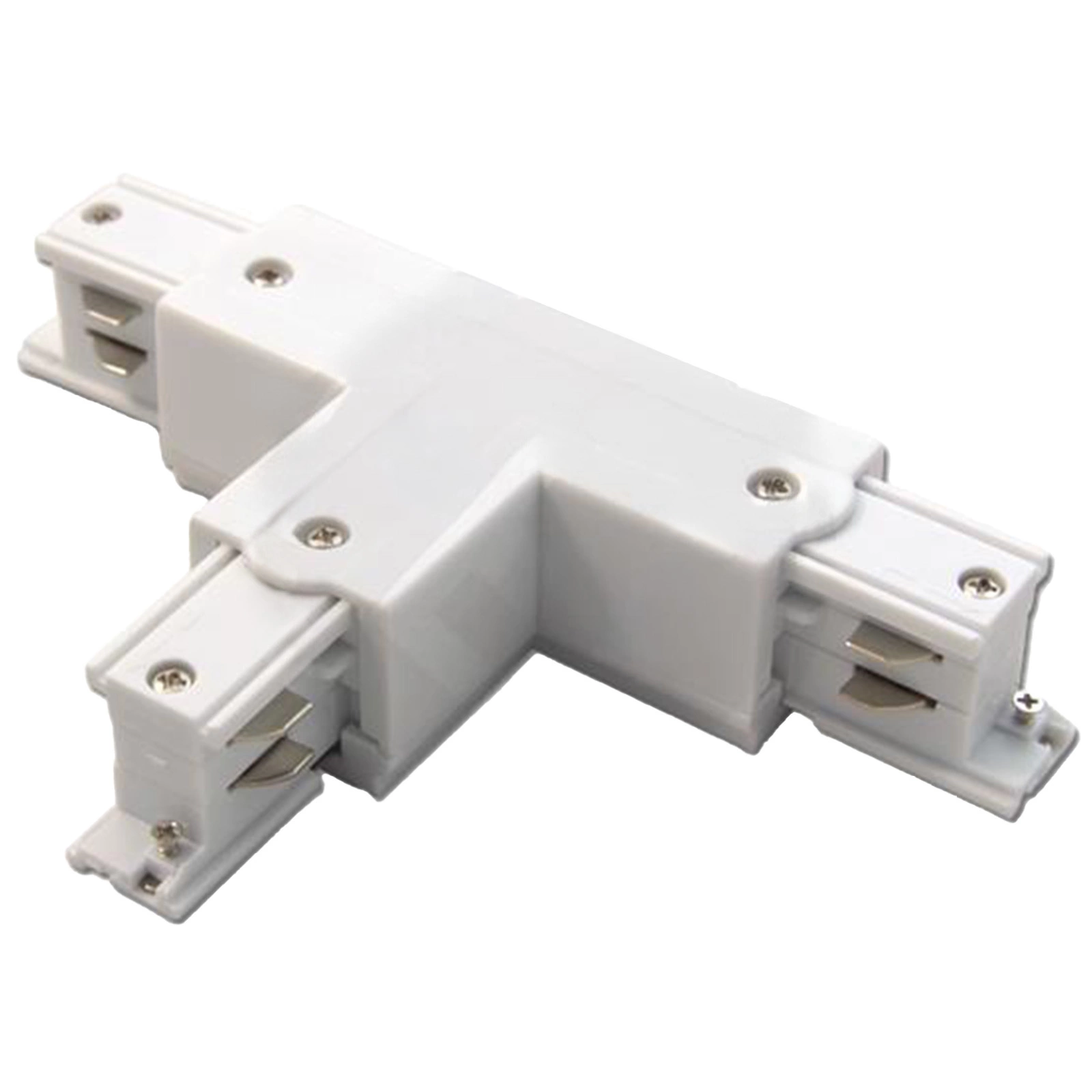Prezentovaný trojitý konektor v bílé barvě je prvkem systému osvětlení kolejí a umožňuje zapojit přípojnice do série a pod úhlem 90° . Použití konektorů vám umožní rozšířit váš kolejnicový systém o sledování světel.