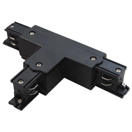 Prezentovaný černý trojitý konektor je prvkem kolejového osvětlovacího systému a umožňuje zapojit přípojnice do série a pod úhlem 90° . Použití konektorů vám umožní rozšířit váš kolejnicový systém o sledování světel.