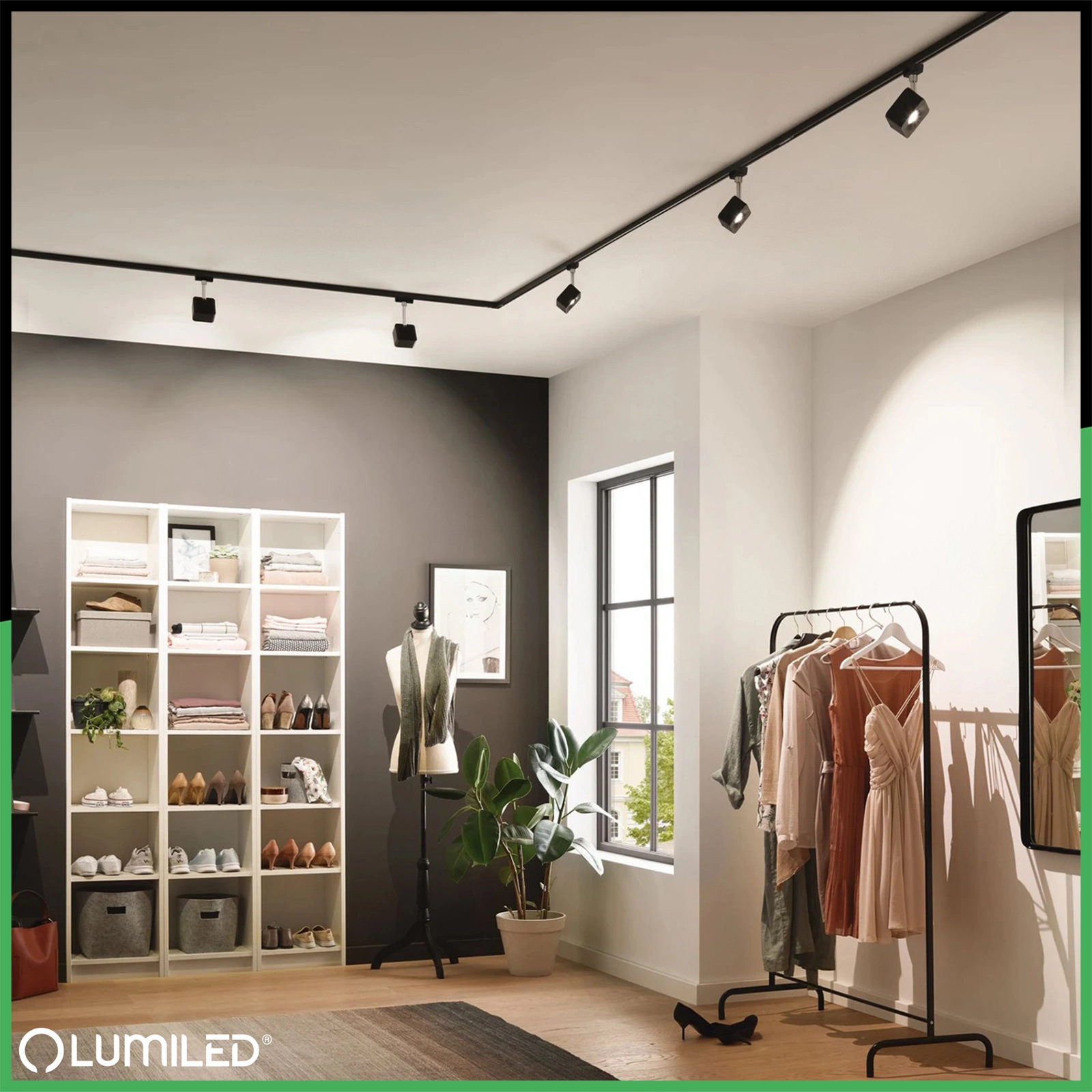 Černá barva dodává instalaci moderní a profesionální vzhled. Dobře se kombinuje s tmavými stropy a kolejnicemi a vytváří tak jednotný a elegantní vizuální efekt. Jedná se o nadčasové řešení, které podtrhuje charakter interiéru a dobře funguje v obytných i komerčních prostorách. Ideální volba pro ty, kteří kladou důraz na styl a funkčnost.