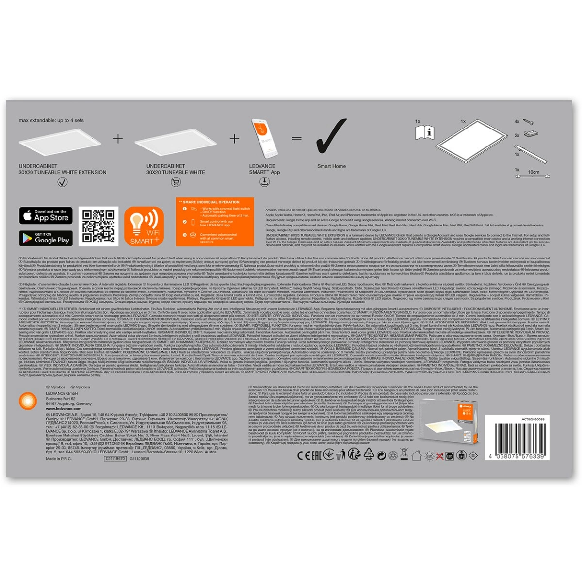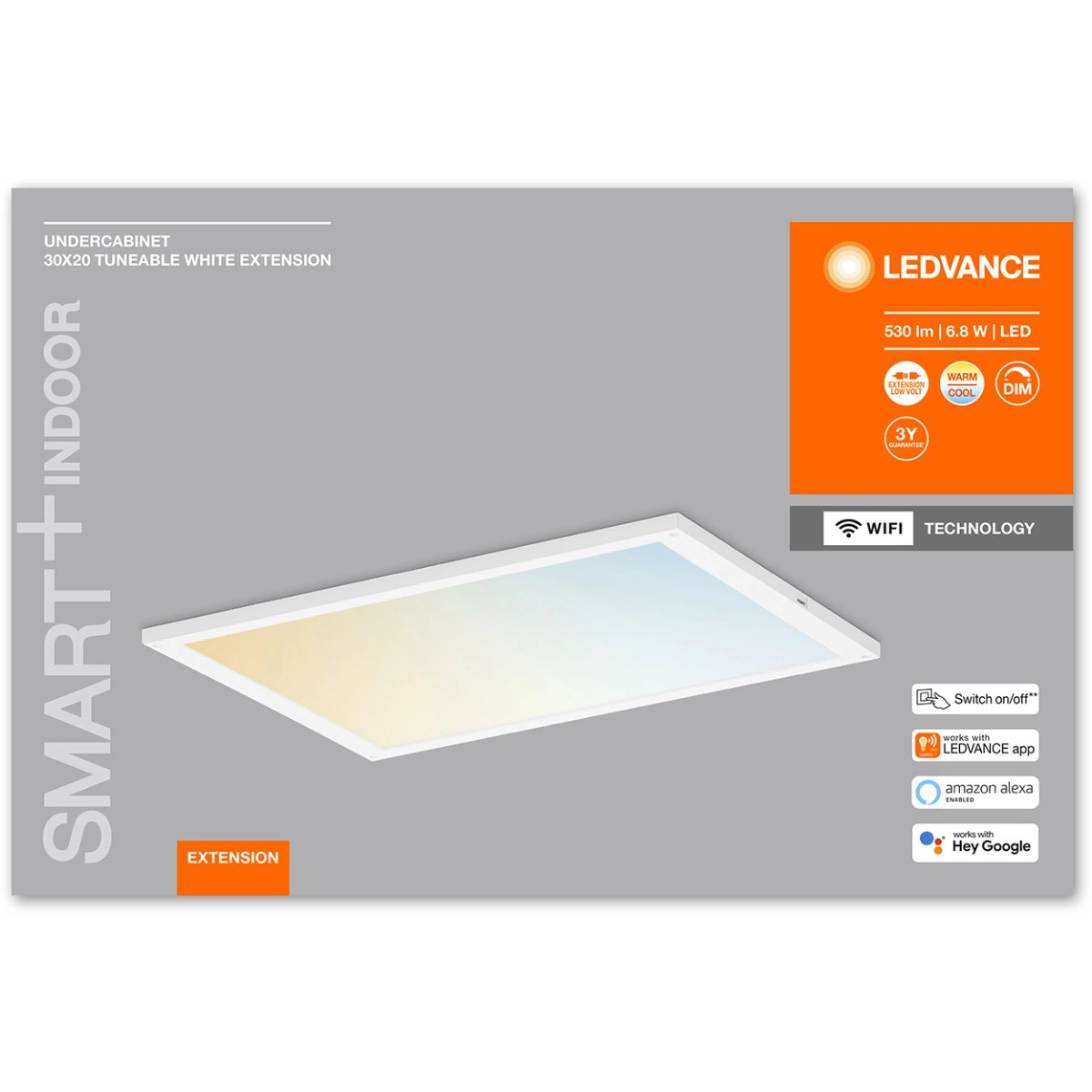 Inteligentní podskříňové svítidlo LED Panel 6,8 W od společnosti Ledvance kombinuje modernost s funkčností a nabízí osvětlení měnící barvu(CCT) a nastavitelný jas. Se jmenovitým výkonem 6,8 W a světelným tokem 530 lm poskytuje účinnost 78 lm/W. Má úhel rozložení světla 120° a pracuje v celém teplotním rozsahu -20...+40 °C.