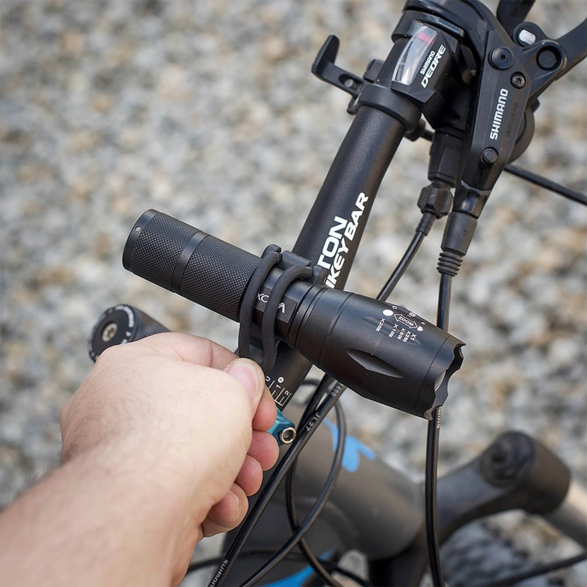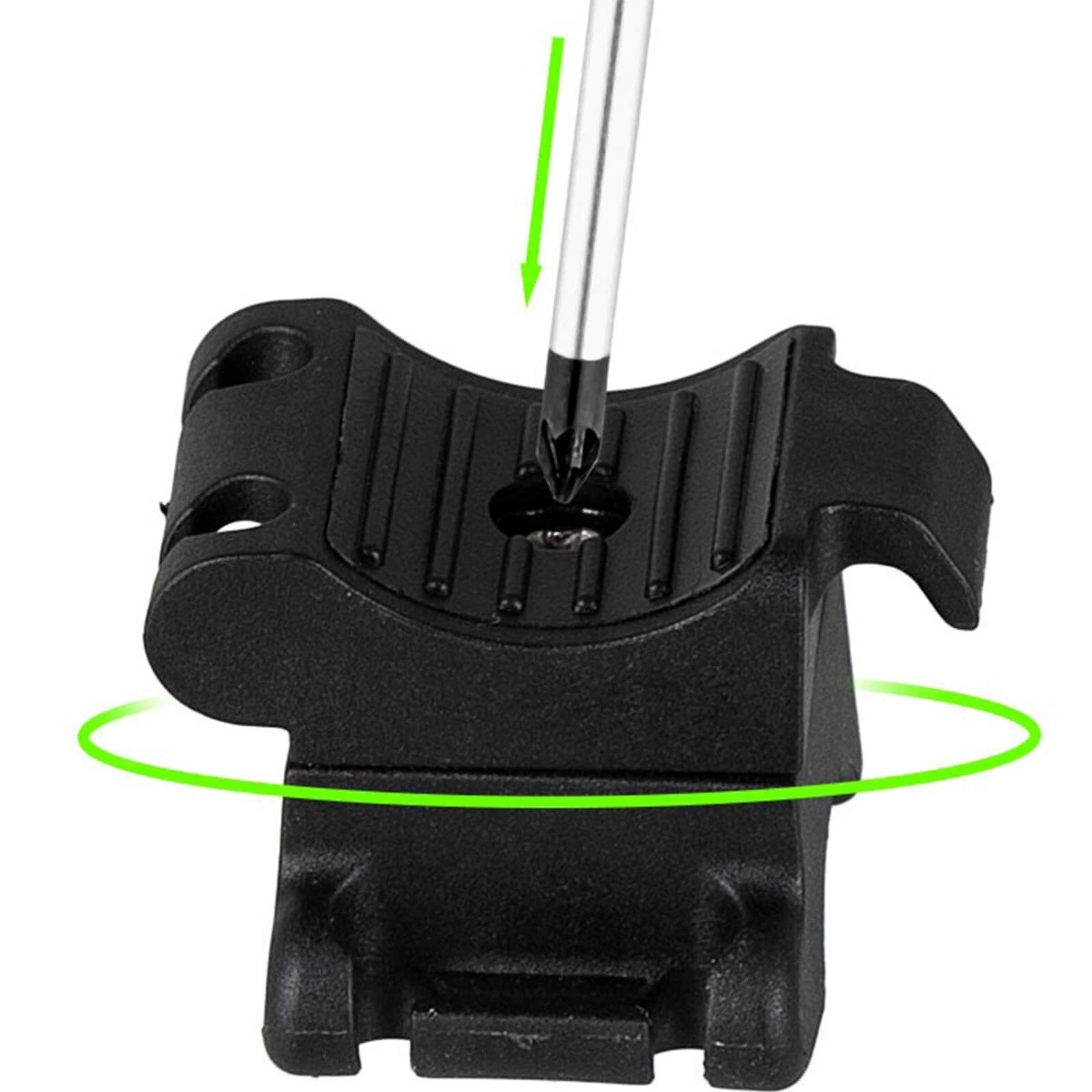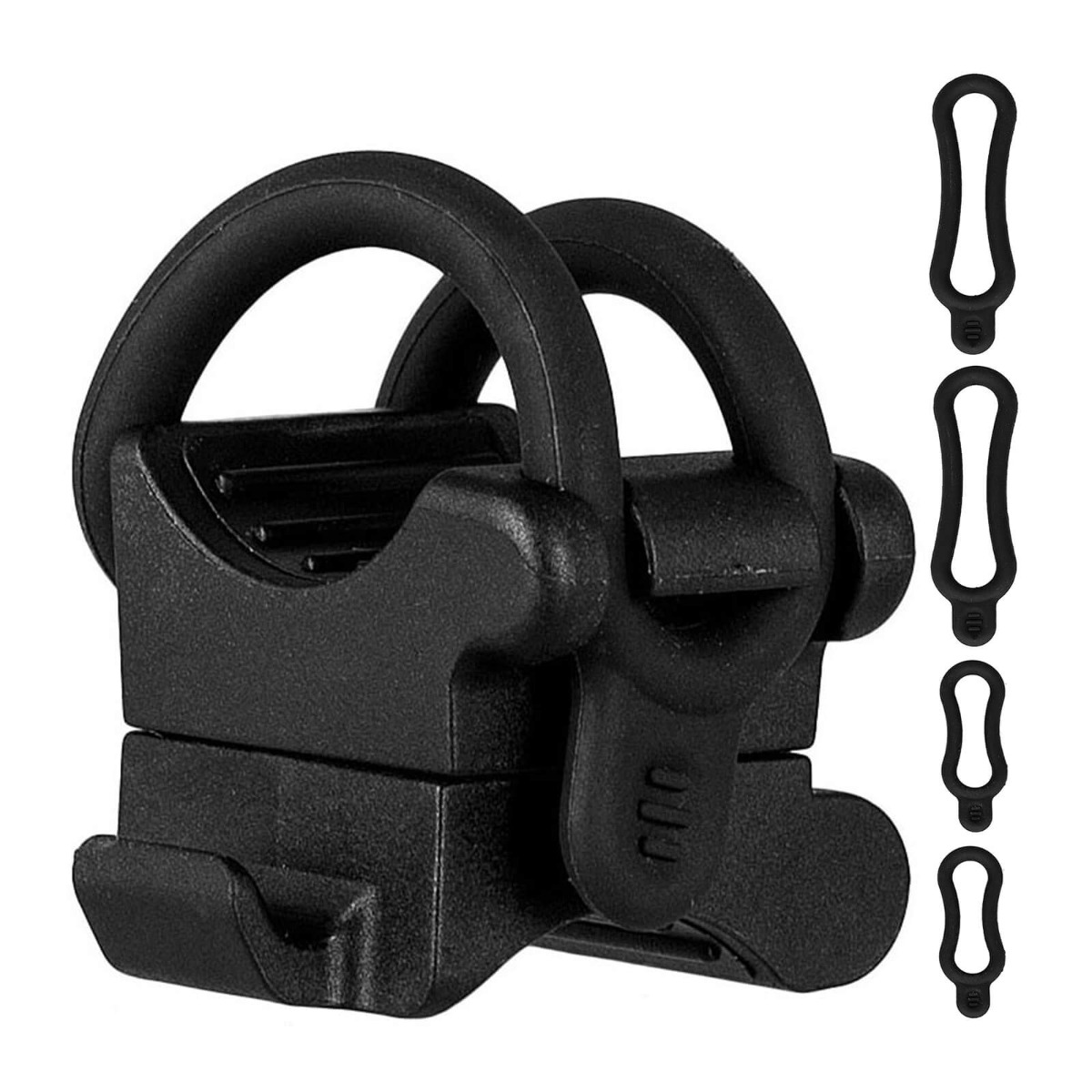Univerzální držák na řídítka pro světla na kolo má otočný držák a dvě velikosti montážních kroužků. Je kompatibilní s řídítky o průměru od 10 mm na 35 mm a hořáky s průměrem těla (střední část) 10 až 35 mm, montáž v horizontální poloze horizontální nebo vertikální. Rukojeť je vyrobena z vysoce kvalitního z plastu, odolné proti povětrnostním vlivům a stabilně držení hořáku v rukojetích.