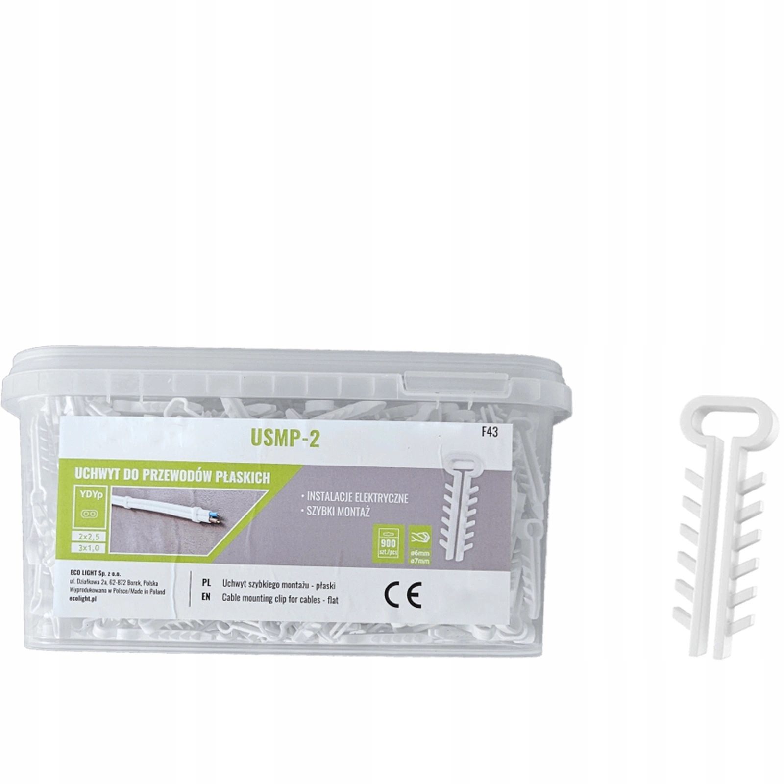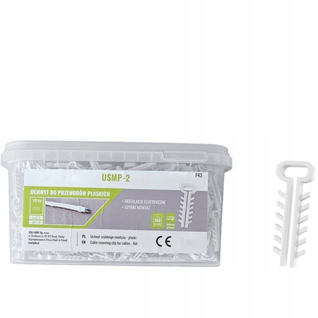 Krabice obsahuje 900 kusů držáků USMP-2, které se vyznačují vysokou kvalitou zpracování. To dokazuje jejich vysoká životnost a bezproblémové používání. Konstrukce držáku umožňuje bezpečně držet kabely ve správné poloze.