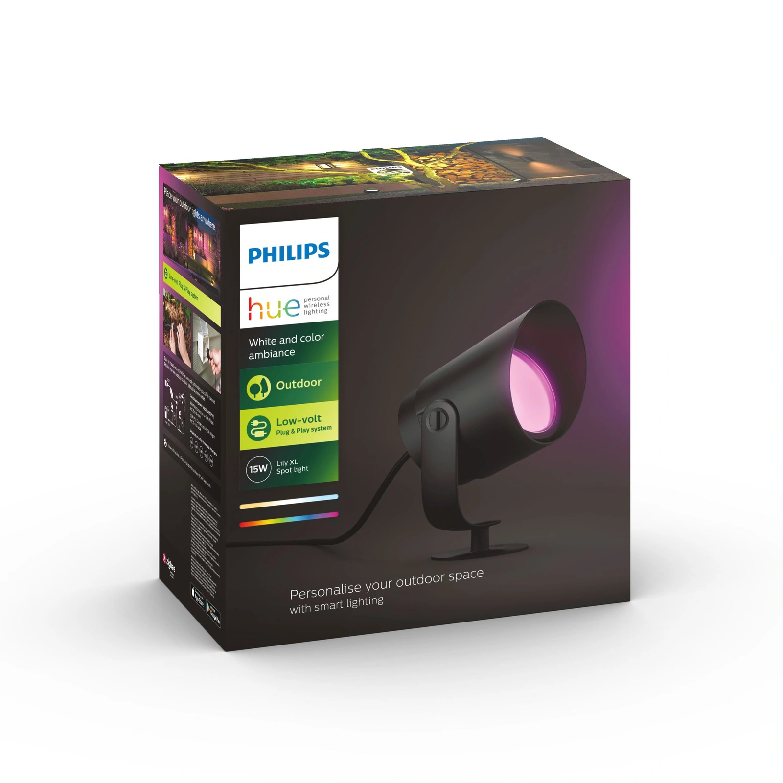 Philips Hue Outdoor je řada výrobků pro zahradu vytvořená světovou jedničkou v oboru osvětlení. Inteligentní systémy osvětlení nyní i pro vaši zahradu. Spotlight barva osvětlení černá s integrovaným světelným modulem LED od LILY XL s výkonnějším světlem, skrytým v nízkonapěťovém svítidle lze s úspěchem použít venku na jakémkoli místě, například na balkoně nebo terase, a díky své robustní a odolné konstrukci jsou ideální i pro použití na zahradě. Udržujte svůj domov v bezpečí, vytvořte si dokonalou náladu, užívejte si toto krásné a široce funkční osvětlení s využitím výhod, které přináší hue jednoduše a pohodlně. Philips Hue Lily XL je odolné a účinné směrové světlo, které vám po instalaci bude sloužit po velmi dlouhou dobu bez nutnosti údržby.