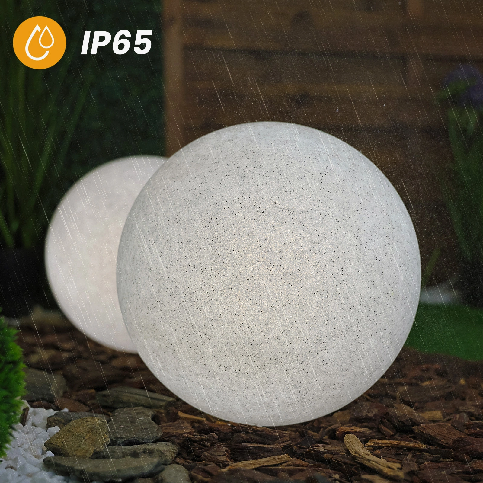 Zahradní míč je vhodný pro venkovní instalaci. Použité materiály dosahují velmi dobrou ochranu proti povětrnostním vlivům IP65, lampa je tak odolná proti stříkající vodě z jakéhokoli směru. Je také chráněn proti vniknutí cizích těles o průměru větším než 1 mm a proti působení prachu.