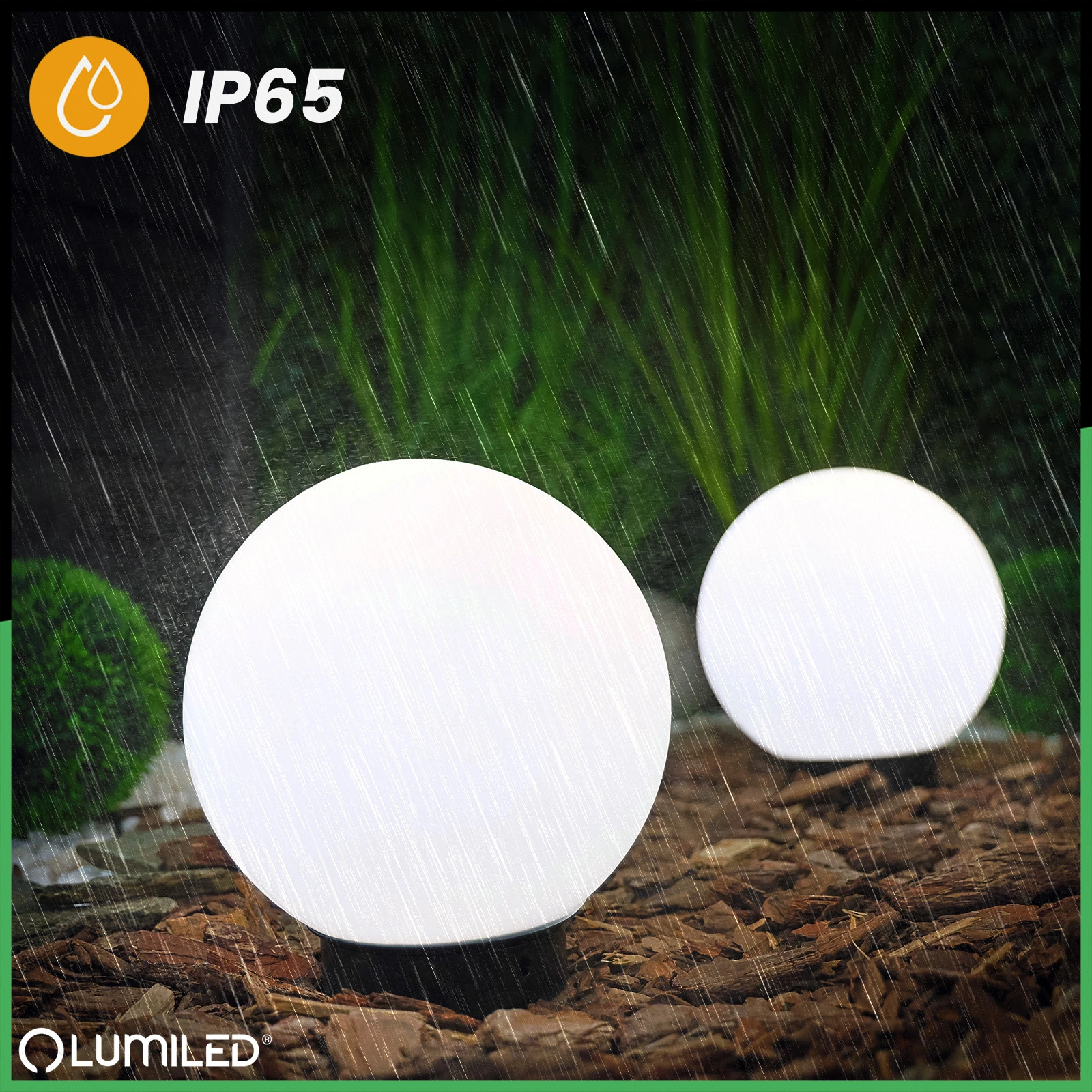 Dekorativní zahradní lampa značky LUMILED ve tvaru koule, přizpůsobená pro LED žárovky E27, umožňuje vytvořit ideální rovnováhu mezi jasným osvětlením a vytvářením atmosférické nálady při večerním odpočinku.