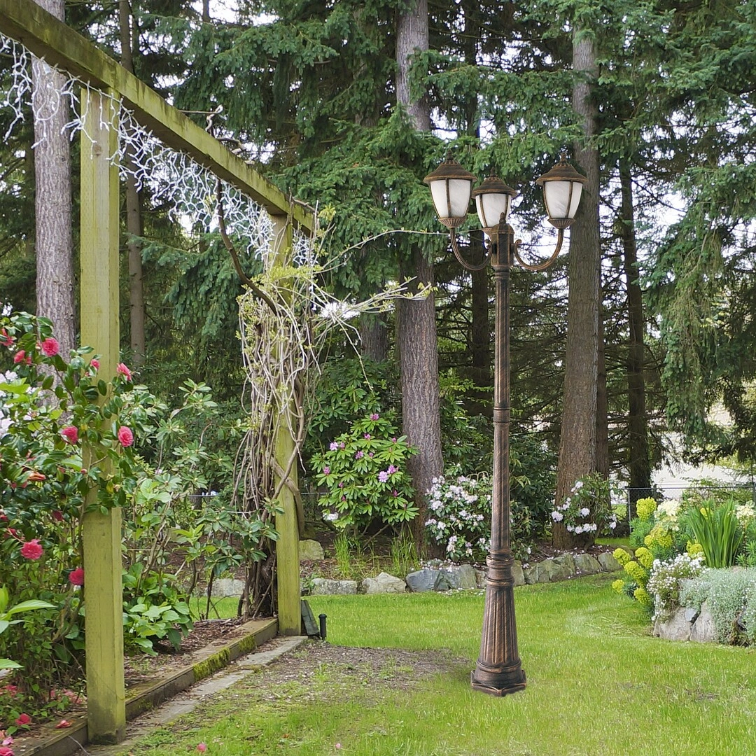 Venkovní LED zahradní lampa MADRID 3xE27 IP43 Sloupová lucerna 210cm starožitné zlato RABALUX