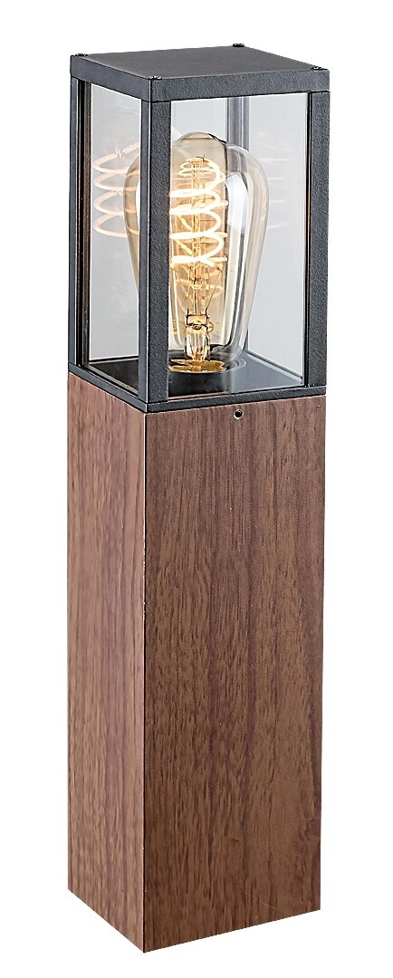 Zahradní sloupek WALES je zajímavé venkovní svítidlo s prostorem pro jeden světelný zdroj s paticí E27, max 60W , které skvěle doplní venkovní osvětlení vašeho domova. Lampa je vyrobena z vysoce kvalitních materiálů: sklo a plast podobný dřevu . Stupeň krytí je IP44 , který zajišťuje těsnost proti vniknutí předmětů o maximálním průměru 1 mm a proti stříkající vodě z libovolného směru. Průhledný kryt zakrývající žárovku dokonale rozprostře světlo v nejbližším okolí a samotný sloupek bude nejlépe vypadat ve skladbě více kusů vedle sebe. Lampa WALES bude jistě skvělým doplňkem vaší zahrady.