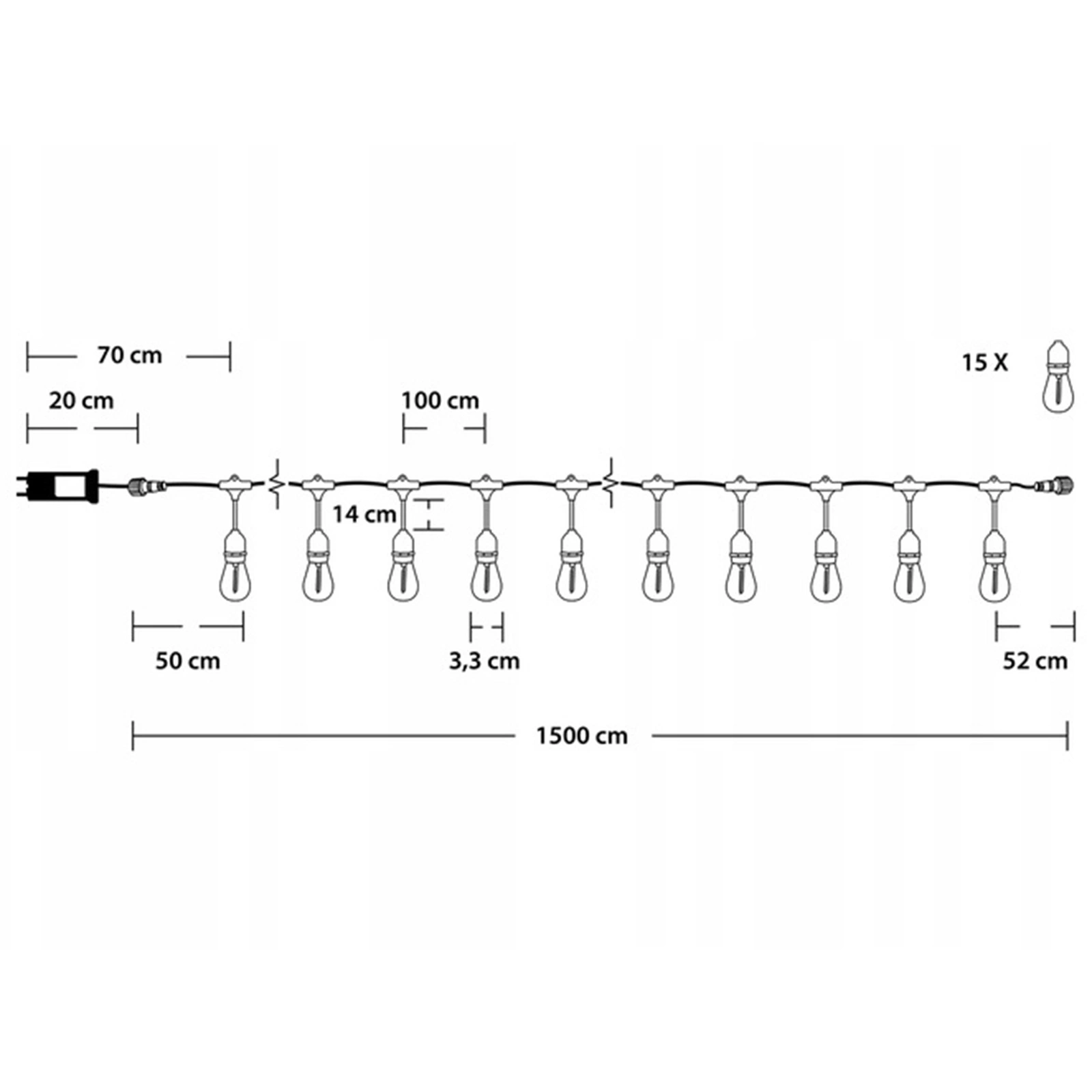 Součástí balení je 15 LED žárovek o výkonu 1,3 W, teplé barvě a vysoké životnosti.
