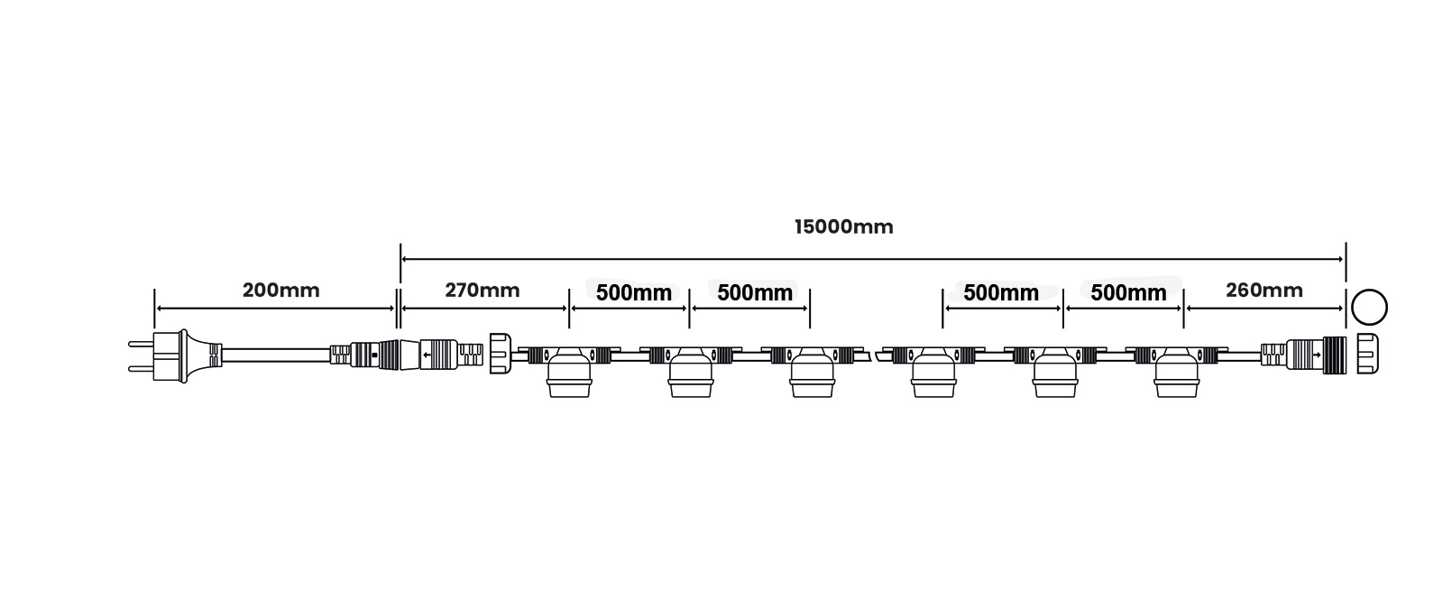 Výhodou této girlandy je, že ji lze prodloužit na délku díky hermetickým spojkám na koncích každé girlandy.