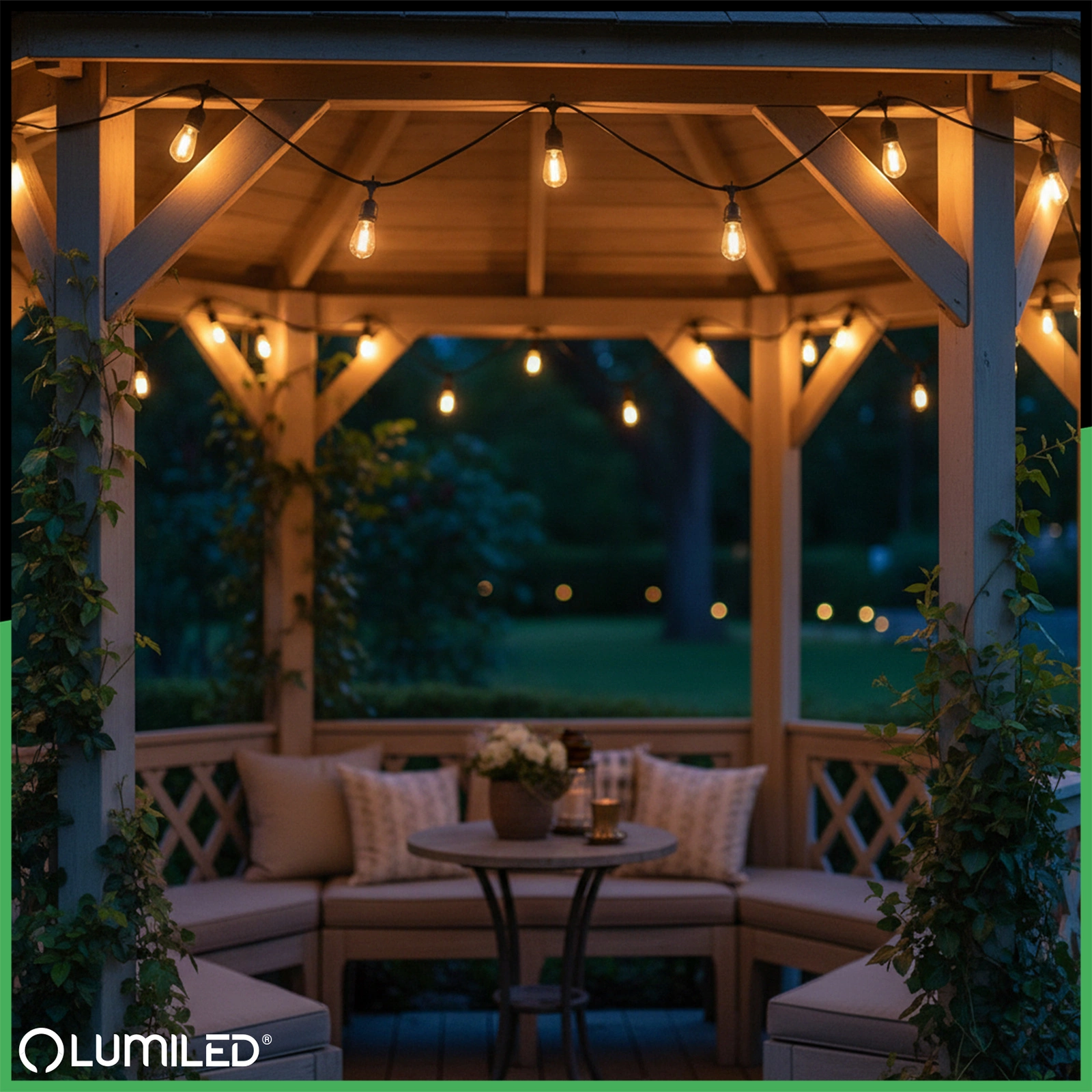 Světelný věnec LUMILED je elegantní a funkční řešení, které dodá šarm každému prostoru. Díky svému klasickému designu dokonale zapadá do estetiky zahrady a vytváří útulnou atmosféru pro venkovní večerní setkání. Může být také hlavním zdrojem světla v altánu a poskytovat dostatečné osvětlení pro večeři i chvíle odpočinku pod širým nebem. Díky světelnému věnci získá každá zahrada nebo altán nový, kouzelný rozměr a stane se oblíbeným místem setkávání a odpočinku pod širým nebem.