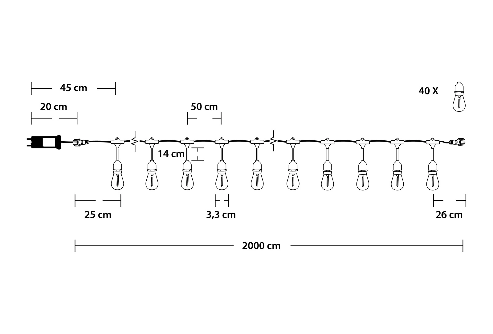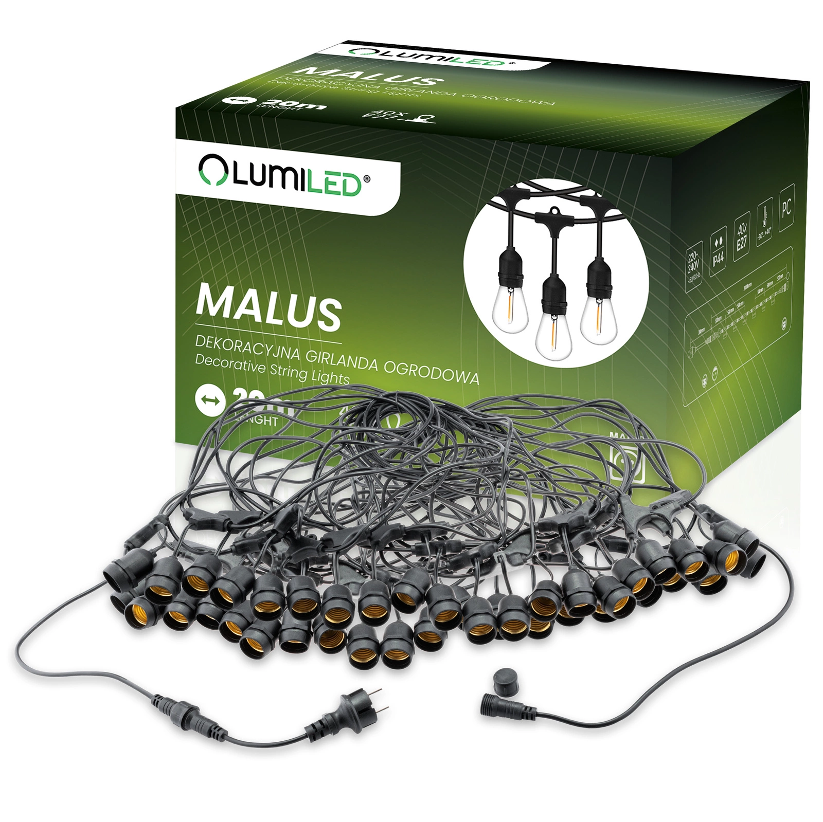 Venkovní řetěz 20m, 40x E27 MALUS LUMILED