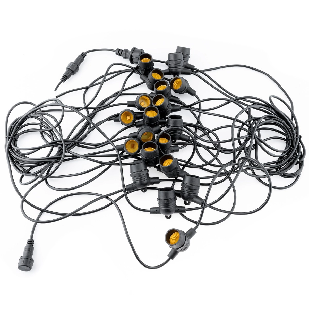 Světelný věnec, 20 m dlouhý řetěz s teplými LED žárovkami umístěnými každých 100 cm má oblíbený závit E27, takže si světelný efekt můžete určit sami. Věnec vypadá na zahradě krásně a může být také hlavním zdrojem světla pro náš altán. Vhodné rozmístění světel v prezentovaném světelném věnci vytvoří nevšední atmosféru a zároveň je ideální pro venkovní večerní akce i pro každodenní klidné večery strávené na terase.