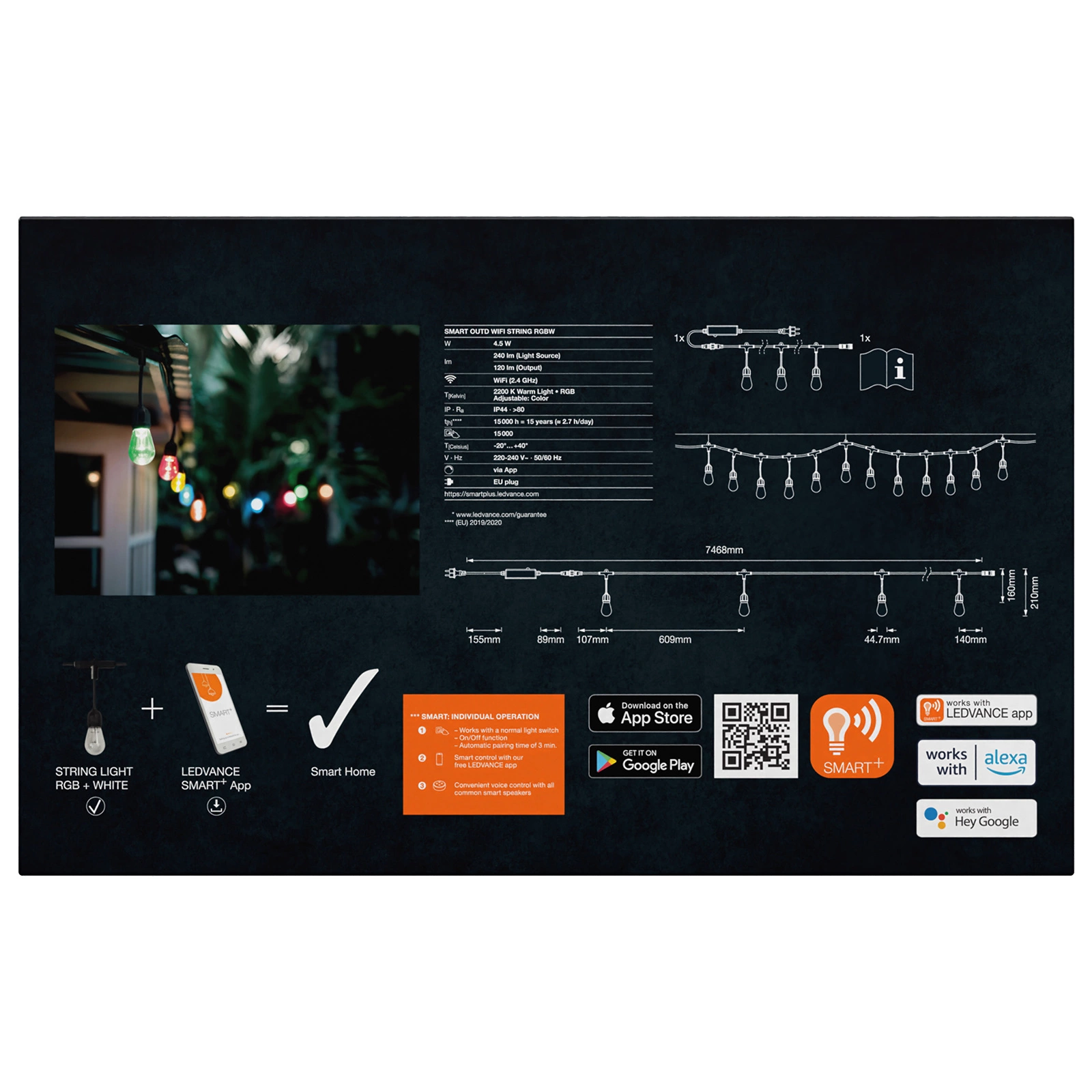 Oživte svou zahradu inteligentním zahradním věncem od společnosti Ledvance. Tento inovativní světelný řetěz s příkonem 4,5 W a světelným tokem 120 lm je ideální pro venkovní dekorace. Díky technologii WiFi a funkci stmívání můžete snadno ovládat atmosféru svého prostoru pouhými několika kliknutími.